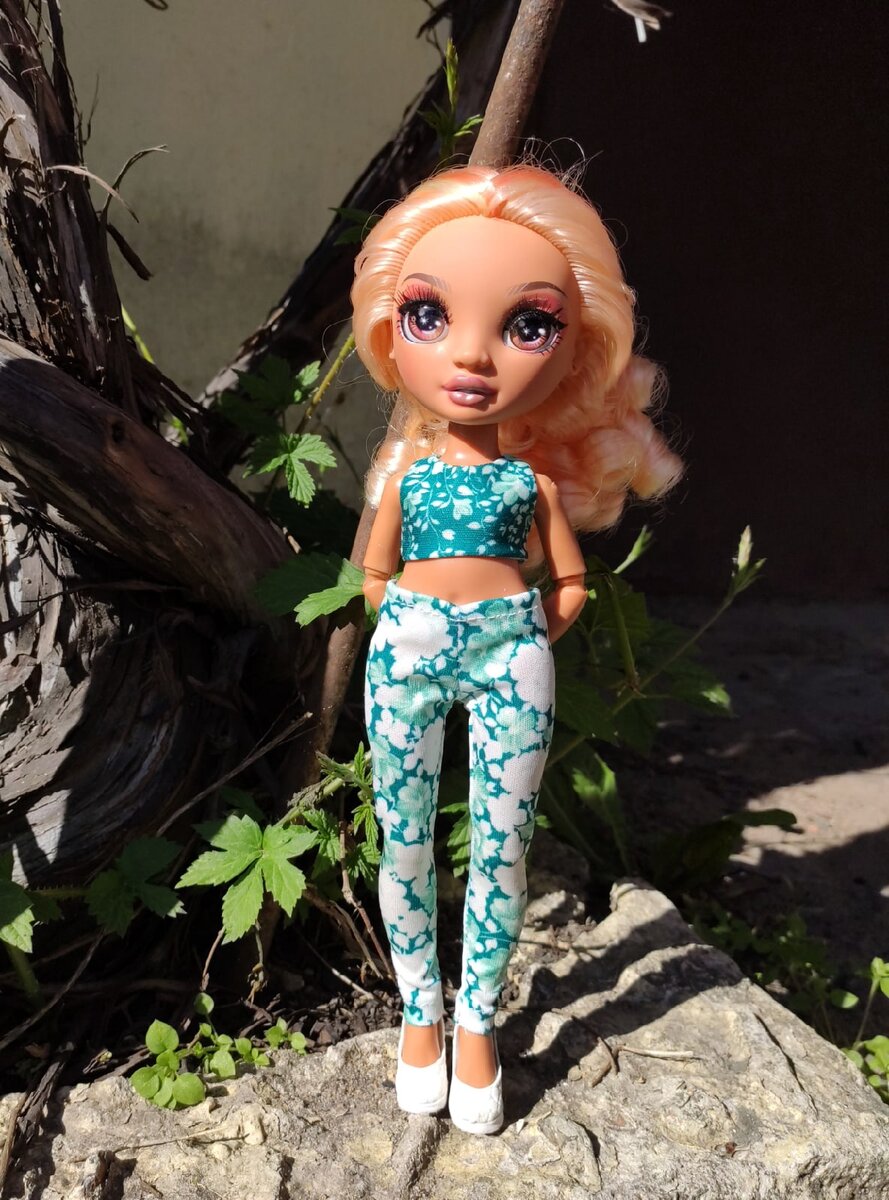 Рада приветствовать всех, кто любит Рейнбоу Хай. Знаю, что большинство покупают кукол для коллекции, куклы сами по себе яркие, к тому же у них шикарные аутфиты. Но я игрун, а не коллекционер, мне интересно шить для кукол, переодевать их, устраивать фотосессии и, как бонус, продавать одежду Поэтому сегодня у моей радужной Джо небольшой показ мод начнем, пожалуй, с 2 костюмчиков для спорта И моя гордость: брюки с карманами, застегиваются сзади вообще, стараюсь избегать черного цвета в одежде, но тут захотелось И первые брюки, которые сшила, они простые, т.к. на них отрабатывалась выкройка и вносились необходимые поправка У каждой приличной девушки в гардеробе должно быть платье, я хотела сшить что-то в стиле одежды рейнбоу хай, материал джинс, застегивается сзади, колготки сетка Юбки тоже нужны, причем на все случаи Вот такой у нас показ мод получился, комплекты свободны и готовы к продаже, за более подробной информацией можно обращаться в группу