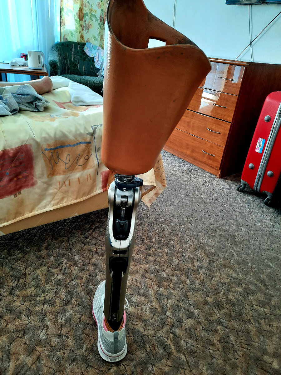 Делаю отступление, чтобы дальнейшее повествование было понятным. А то я вам рассказываю, а вы смутно понимаете, как этот протез ко мне крепится, почему не слетает и как ходит. Я сама до прошлого года этого не представляла. Да я вообще забыла о том, что протез может крепится. Последний протез я одевала, как сапог, он присасывался за счёт вакуумной клапана, о больше ничего не требовалось. Вот этой присоской он был очень удобен, по ней только и страдаю Переходим к трехмиллионнику. Сначала нужно одеть силиконовый чехол, при чем для этого нужно иметь сноровку. Одеться он должен так, чтобы нога, которая пристегнется к нему посредством двух липучек, встала ровно, так как надо. На чехле есть две липучки, которые к нему прикручивать. И эти закрутки, не знаю, как их назвать, желательно проверять каждое утро, чтобы не открутились, а то вылетишь из протеза, у меня такое бывало по первости . Так что внимательнее к себе. Далее, на этот чехол надевает ногу, не забыв засунуть липучки в два отверст