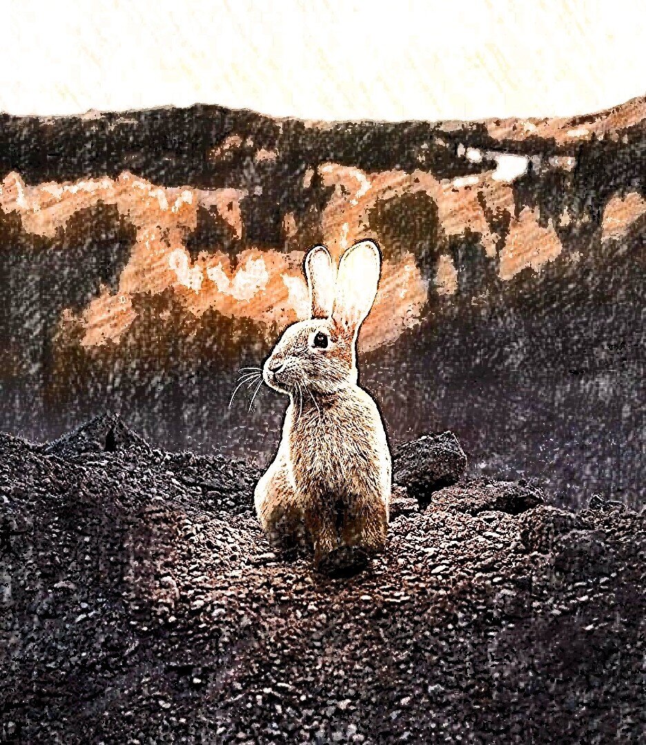 Из норки вылез самый маленький крольчонок, он поднял глаза на старшего брата. Брат заметил его, и их взгляды пересеклись. В глазах маленького крольчонка можно было разглядеть полное доверие к своему брату. Старший пискнул ему в ответ и спрыгнул с пня. Братья поскакали к своей норке, как вдруг из кустов выбежал олененок, который был явно чем-то обеспокоен. Старший братец остановился, повернул на него голову и увидел, что он бежит от кого-то или от чего-то. Надо было спасать своих братьев и сестёр. Хоть любопытство сильно терзало его, всё же безопасность родных он поставил выше всего остального. Пискнув малому, они быстро забежали в свою норку и, собрав
