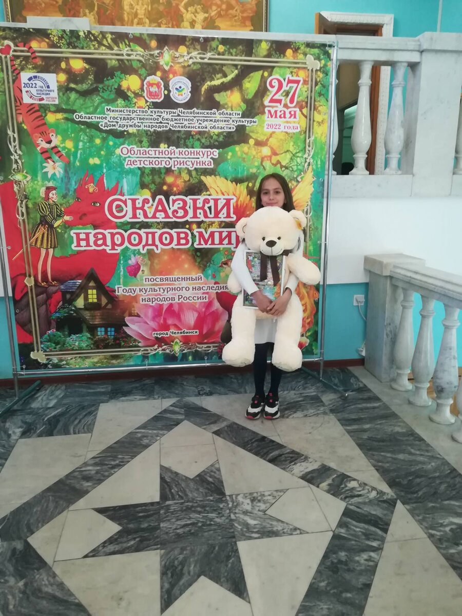 Бабушкина Ксения, ученица первого курса Школы графики и дизайна стала лауреатом в областном конкурсе детского рисунка "Сказки народов мира". Для конкурса Ксения выполнила иллюстрацию к башкирской народной сказке "Котёнок и мышонок". Дом дружбы народов Челябинской области организовал настоящий праздник для победителей и призеров конкурса. 27 мая в стенах Концертного зала им. С.С. Прокофьева состоялась торжественная церемония награждения. Всего в конкурсе приняли участие 357 детей и лишь 39 удостоились звания Лауреата. Ещё два участника получили специальный приз от организаторов. Ребят встретили удивительные мастер-классы в фойе концертного зала. Участники плели обережные браслеты, сделали своими руками птичек из ткани и традиционную тряпичную куклу-хороводницу. А еще попробовали из своих ладошек сложить свистульку и даже поиграть в бумажные сказки! Каждый нашёл дело себе по душе. Кульминацией праздника стал концерт для Лауреатов конкурса: детская хореографическая группа государстве