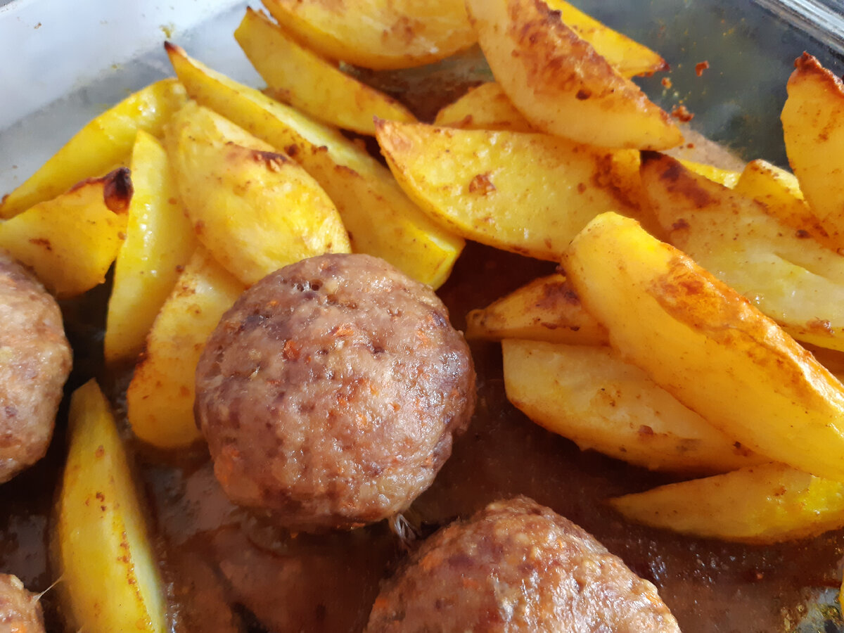 запекла картофель и морковь в духовке, котлеты (домашние, свино-говяжьи), огурцы, помидоры черри