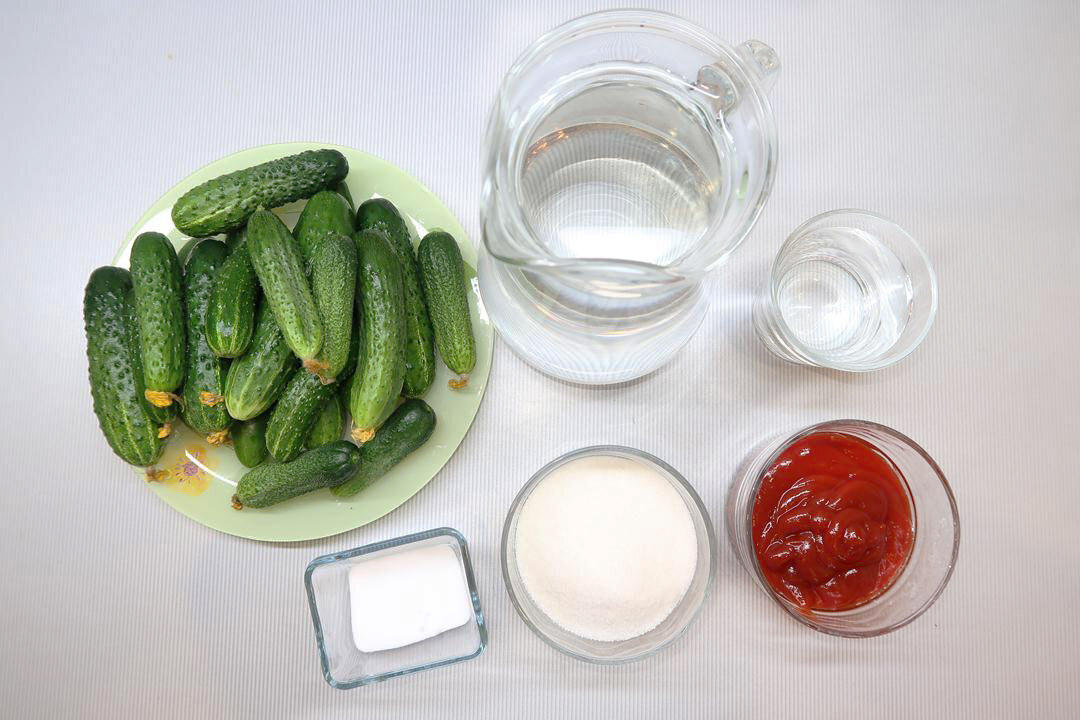 Сегодня мы будем готовить маринованные огурцы с кетчупом чили на зиму. Маринованные огурцы с кетчупом чили получаются пикантными, сбалансированными по вкусу, кисло-сладкими, а также хрустящими и очень ароматными. Процесс приготовления такой зимней заготовки не является трудоемким. Для этого необходимо подготовить небольшой набор продуктов, а также уделить немного свободного времени. Чтобы приготовить маринованные огурцы с кетчупом чили на зиму, нам понадобятся следующие ИНГРЕДИЕНТЫ НА 5 ЛИТРОВЫХ БАНОК: МАРИНОВАННЫЕ ОГУРЦЫ С КЕТЧУПОМ ЧИЛИ НА ЗИМУ ПРИГОТОВЛЕНИЕ: Видео приготовления: РЕЦЕПТ ПРИГОТОВЛЕНИЯ: Огурцы для консервации отбираем небольшие, без повреждений. Огурцы промываем в холодной воде. Затем у огурцов отрезаем оба кончика. Чтобы огурцы получились хрустящими, замачиваем их в холодной воде на 2-3 часа. Если вы используете огурцы только что собранные с грядки, то их можно не замачивать. Следующий шаг – подготовка банок. Банки стерилизуем любым удобным для вас способом. Затем пл