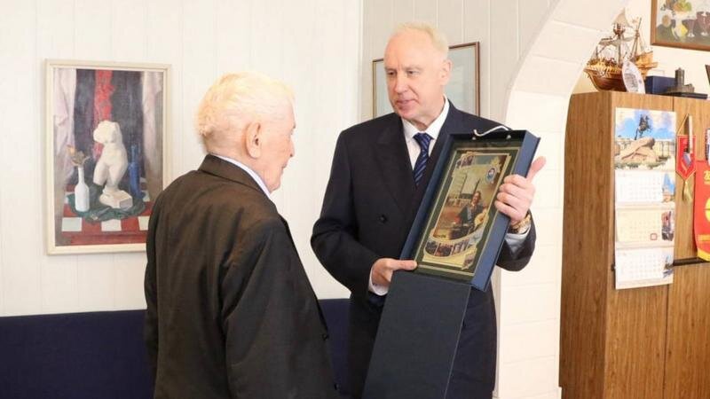 Экс-руководитель города подарил в ответ книги о блокадном Ленинграде. Фото: пресс-служба Следственного комитета Во время рабочей поездки в Петербург председатель Следственного комитета России Александр Бастрыкин навестил члена организации «Жители блокадного Ленинграда» Владимира Ходырева. Как рассказали в СК, глава ведомства поздравил Ходырева с присвоением ему звания «Почётный гражданин Санкт-Петербурга». — Мы учились у вас стойкости, твёрдости, последовательности. Спасибо за ваш труд на ниве Ленгорисполкома. Мы помним ваши инициативы: метро, дамба, новые предприятия. Вас очень уважают и любят ленинградцы и петербуржцы, — сказал глава ведомства. Глава СК России наградил Ходырева ведомственными медалями, а также вручил ему книги, сувениры и памятные подарки. Экс-председатель Ленгорисполкома поблагодарил Бастрыкина за внимание, пожелал успехов Следственному комитету и подарил книги о блокадном Ленинграде. Видео: пресс-служба Следственного комитета России Ранее 78.ru писал о том, что в э