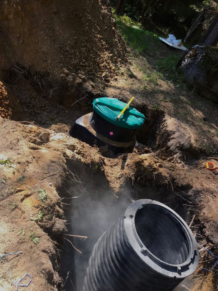 Недалеко от Красной долины в одном из СНТ, установили септик «Росток Загородный»самотечный со сбросом в конический фильтрационный колодец .