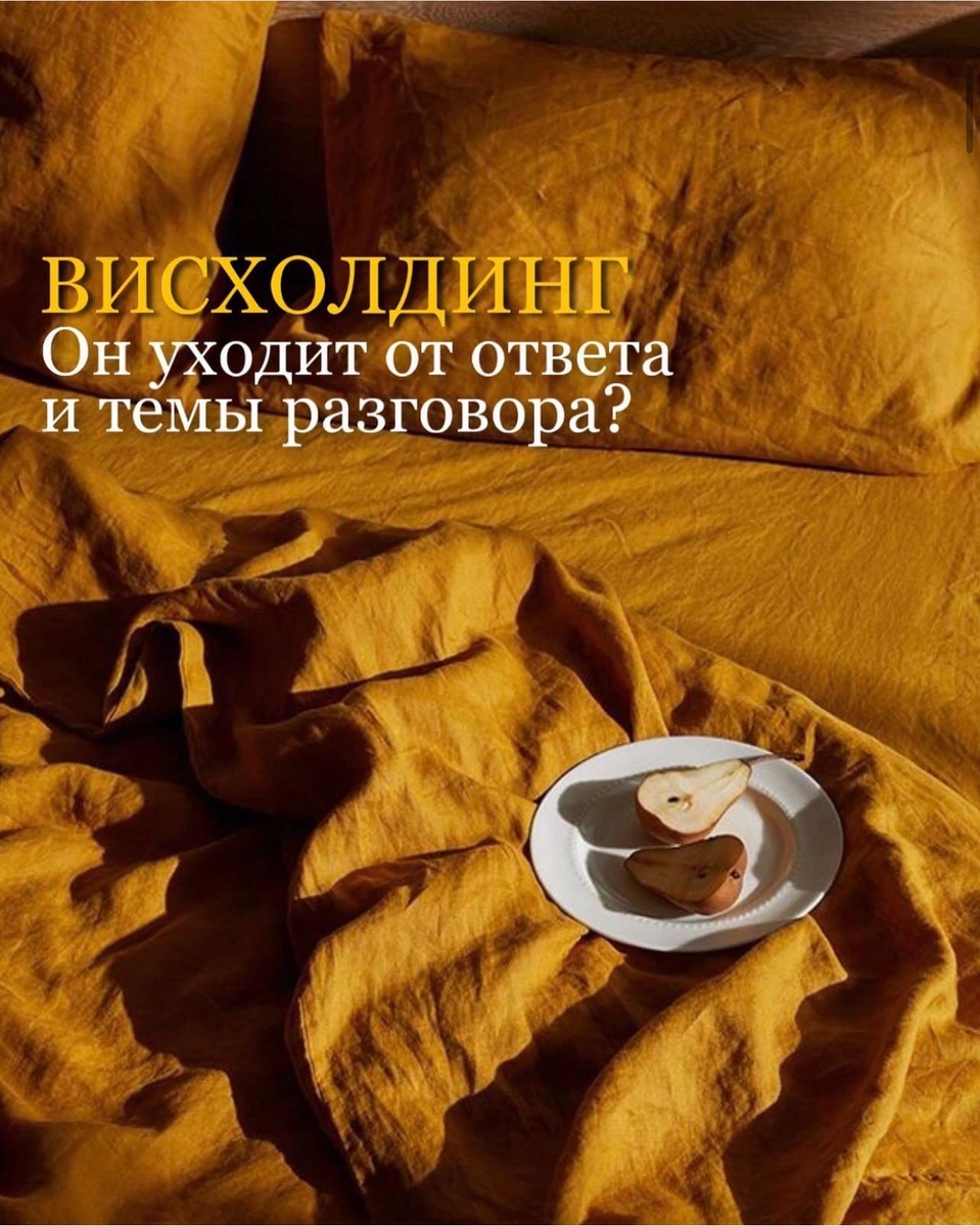 Ты снова почувствовала себя опустошённой после попытки поговорить или услышать от него ответ на свой вопрос? ⠀ Вероятно твой партнёр как одно из средств манипуляции использует: Висхолдинг. Висхолдинг - пассивный вид агрессии, который обесценивает вас без лишних оскорбляющих слов или физического вреда, что доставляет ещё больше душевной боли. ⠀ КАК ПРОЯВЛЯЕТСЯ? Допустим… Ты хочешь узнать почему он пришёл поздно? Почему он не помогает по дому? Почему он к тебе пренебрежительно относится? Почему он тебя не уважает? ⠀ Но вместо конкруктивного ответа ты получаешь его недоответ в виде: ⠀ ❕сарказма и отшучиваний «Ой, опять ты там себе что-то надумала, глупенькая дурочка» ❕смена темы разговора «Кстати, ты сделала, что я тебя просил?» ❕невнятные размусоливания вопроса «Хороший вопрос конечно, но если посмотреть с другой стороны, то вот например, произошло бы вот также, то что бы ты подумала?» ❕отменяет важность вопроса «Ты ведь все равно не поймёшь меня. Смысл мне отвечать.» ❕частичное игн