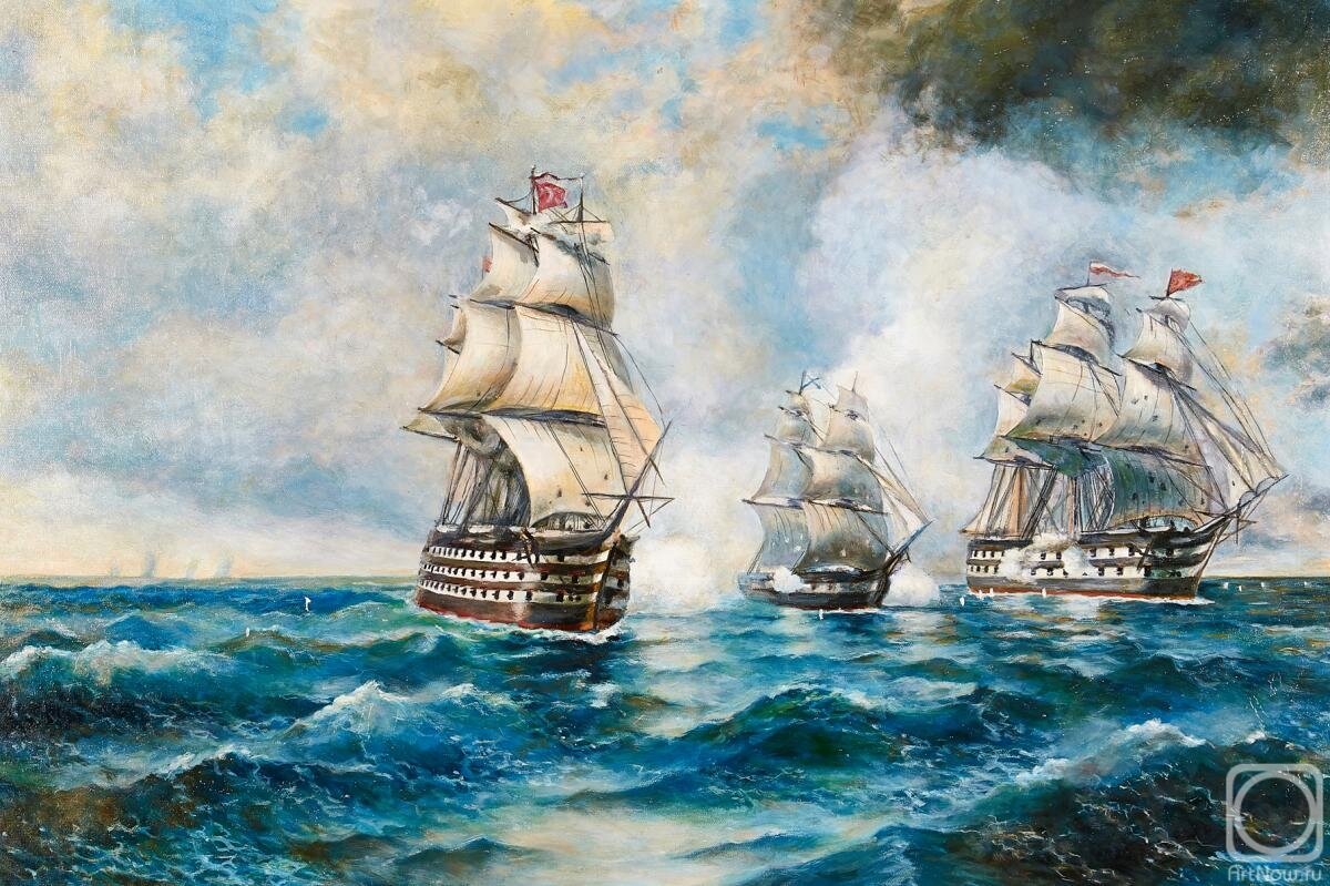 Во вторник, с рассветом, приближаясь к Босфору, мы приметили три русских судна, фрегат и два брига; мы погнались за ними, но только догнать могли один бриг в 3 часа пополудни. Корабль капудан-паши и наш открыли тогда сильный огонь. Дело неслыханное и невероятное. Мы не могли заставить его сдаться: он дрался, ретируясь и маневрируя со всем искусством опытного военного капитана, до того, что, стыдно сказать, мы прекратили сражение, и он со славою продолжал путь. Бриг сей должен был потерять, без сомнения, половину своей команды, потому что один раз он был от нашего корабля на пистолетный выстрел, и он, конечно, ещё более был бы повреждён, если бы капудан-паша не прекратил огня часом ранее нас.