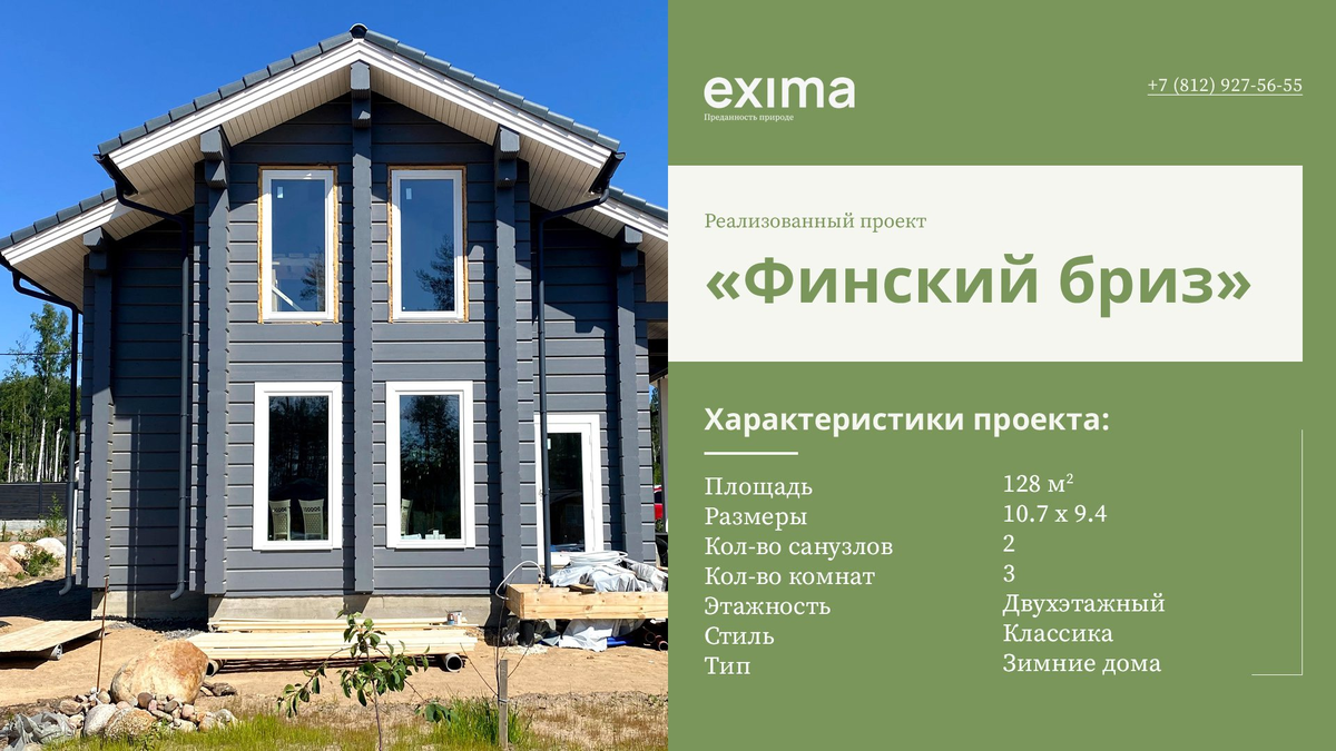 Реализованный дом по индивидуальному проекту в Санкт-Петербурге с характеристиками:
