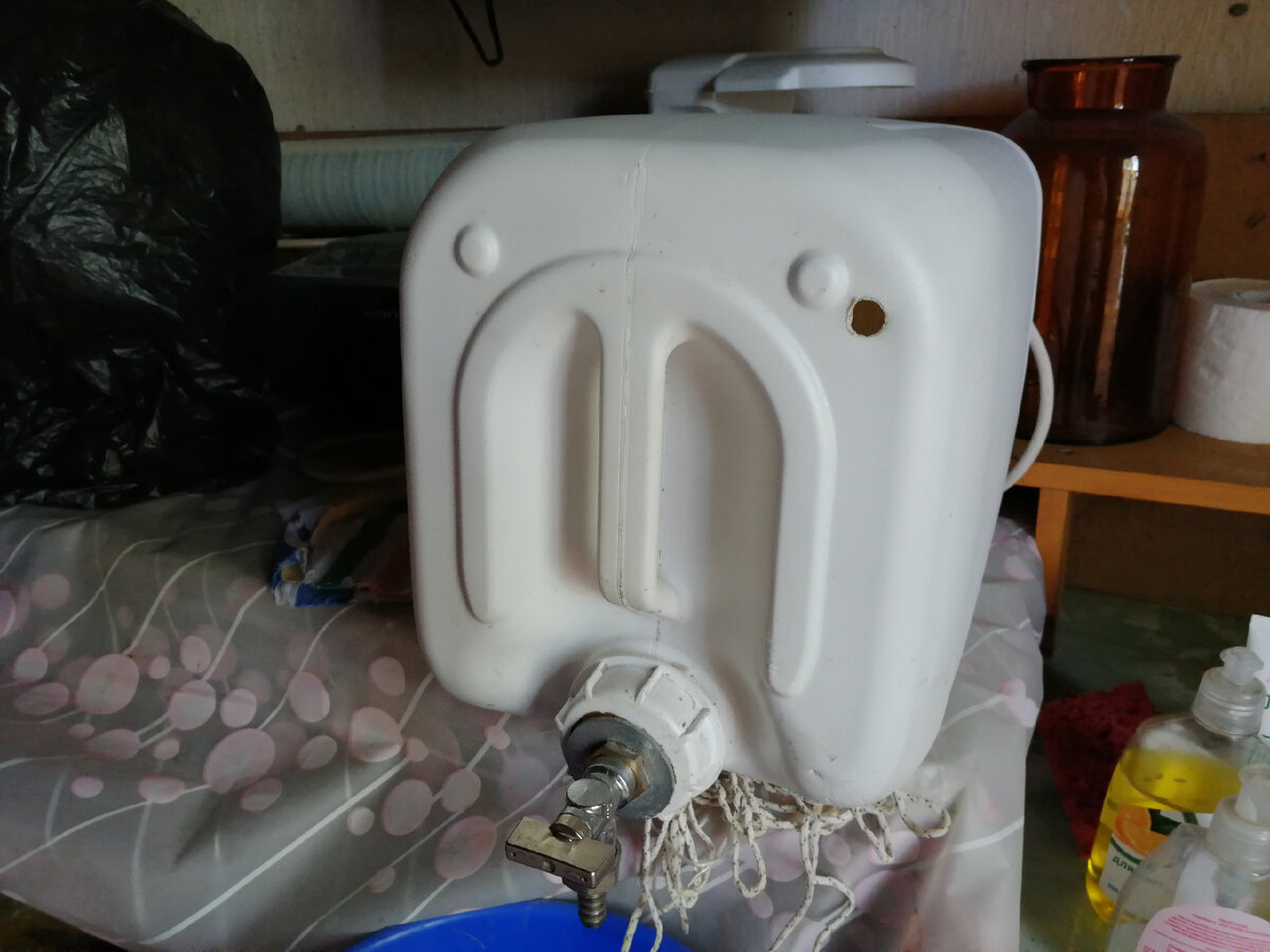 Друзья сделали и мне подарили. Пользуюсь не нарадуюсь. До чего ж удобно. Особенно там, где нет водопровода и нужно что-то придумывать, чтобы не бегать за водой постоянно. Особенно, если бегать далеко. Обычно для таких случаев используют рукомойник с пимпочкой (то есть, шток-клапаном) внизу. Нажал - вода полилась. Например, такой Но они довольно маленькие (3-5 литров) и воды надолго не хватает. Да и не всегда удобно, что вода не льется, как из крана. Такой разве что у туалета вешать, чтобы можно было сразу сполоснуть руки. Мой самодельный рукомойник решает обе эти проблемы. Он вместительный и с краником Все очень просто. Берется канистра (у меня на 20 литров). Например, такая. Главное, чтобы крышка была побольше диаметром. В канистре обязательно нужно сделать дырочку (на фото видно, где именно), чтобы вода нормально лилась. Покупаем в хозяйственном магазине краник и делаем в крышке отверстие под его диаметр. Вставляем туда краник (лучше на резиновую прокладку) и заливаем герметико