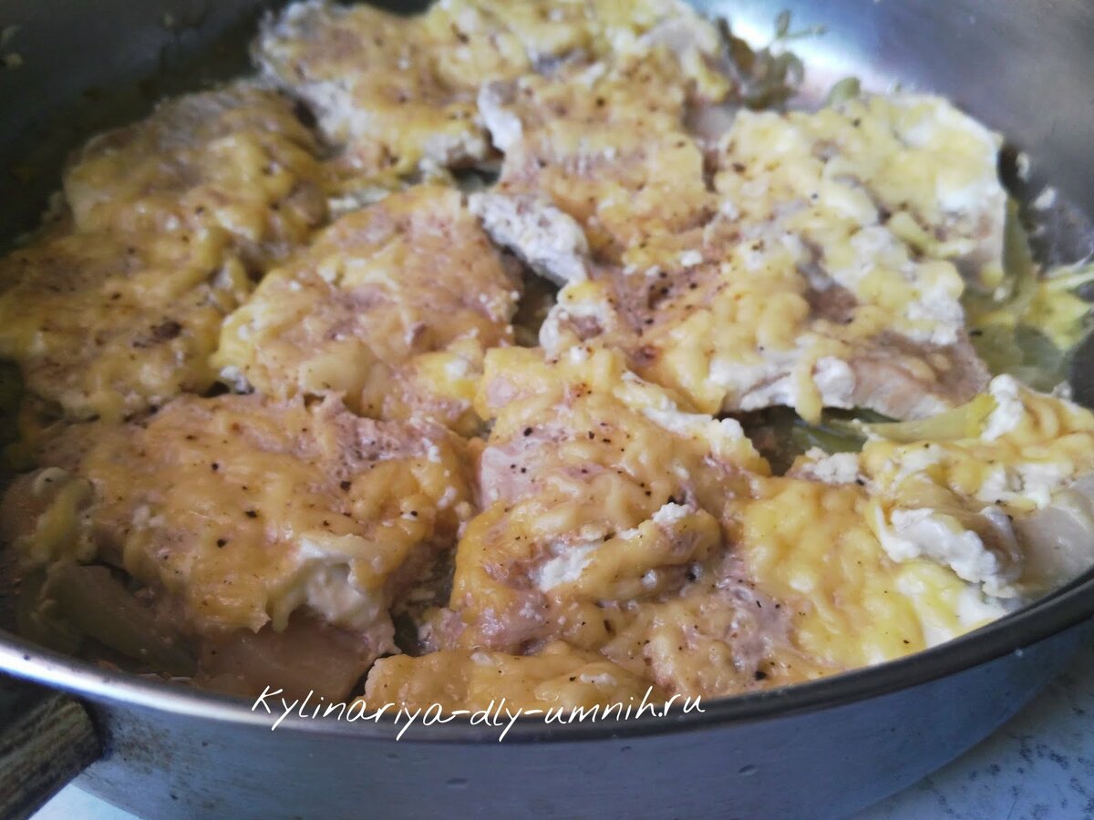 Всем доброго и солнечного майского дня, мои уважаемые Умные Хозяйки Хозяева! Сегодня хочу предложить вам рецепт свинины по-французски, как всегда необычный! Готовить свинину по-французски будем с вами на сковороде! Отличный вариант, если не хочется включать духовку или на вашей кухне её вообще нет. Получается такая свинина сочной, нежной, ароматной, а готовится, как всегда, просто и из минимального количества продуктов. Попробуем?! Нам потребуется: Свинина нежирная – 500-600 г, сыр – 100 г, лук репчатый – 1 шт., майонез или сметана – 2-3 ст.л, масло растительное – 2 ч.л., соль, перец чёрный молотый Приготовление: Свинину помойте, обсушите и порежьте слайсами поперёк волокон толщиной примерно 0.5 см. Лук нашинкуйте тонкими полукольцами сыр натрите. В сковороду влейте масло. Насыпьте слой лука.Уложите кусочки свинины, посолите, поперчите и смажьте майонезом или сметаной. Сверху всё это дело засыпьте тертым сыром. Теперь ставим сковороду с нашей будущей свининой по-французски на самый ти