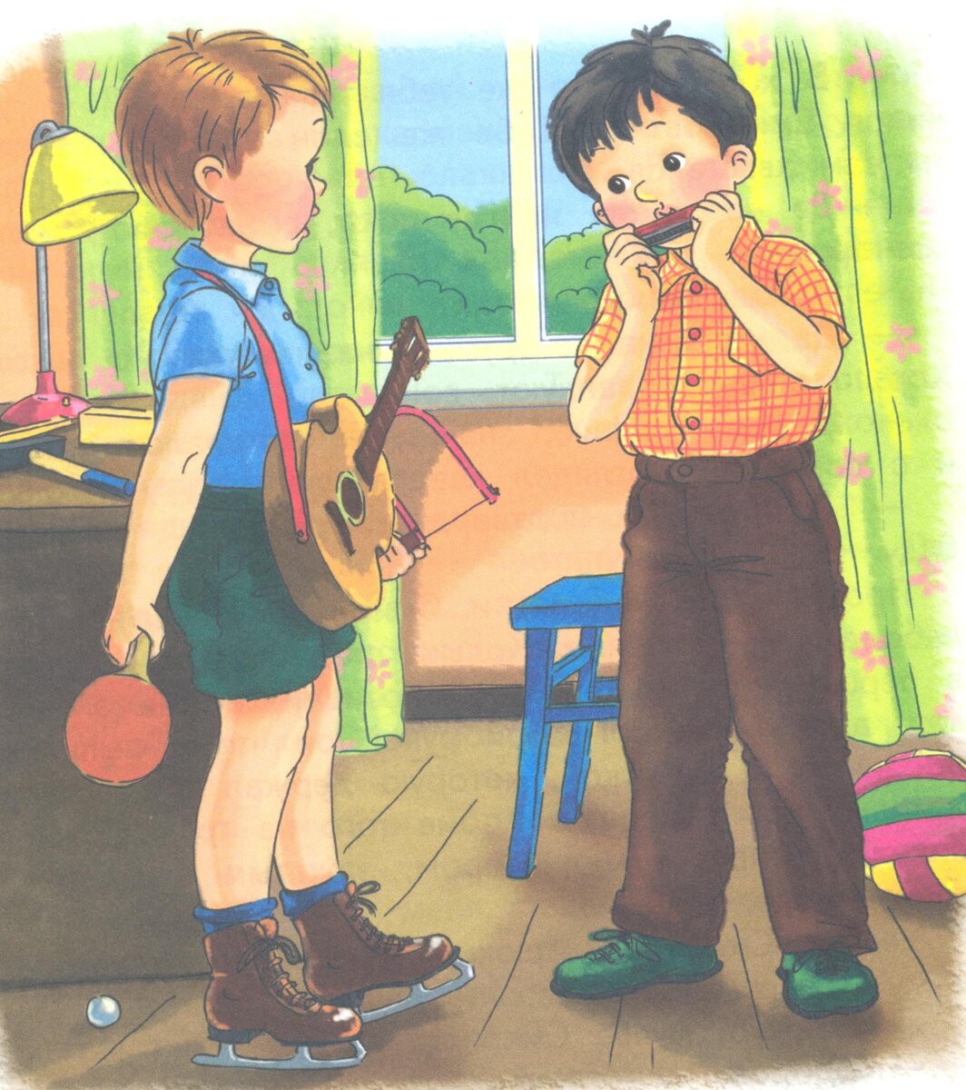 Григорий Иоффе — Вчера в секцию записался! — похвастался Колька Трюкин. — В какую? — спросил Смирнов. — А в эту, в катание, как его, ну в такое катание... — На качелях, что ли? — Нет, другое, которое зимой, на этих, как их... — На санках? — Нет, с ботинками. Как их? — Коньки? Фигурное катание, что ли? — Ага. Фигуристом буду. — Молодец! — похвалил Смирнов.— Хорошая секция. — Это что! — раззадорился Трюкин.— Я ещё запишусь. Во все школьные кружки, и в детский клуб, и в Дом пионеров! — Зачем во все-то? — Понимаешь, Смирнов, человек, а тем более современный, обязан быть гармонично развитой личностью. — Ну и шёл бы на гармошке учиться. Другие-то кружки зачем? — Можно и на гармошке,— согласился Трюкин.— Ты только главное пойми: гармоничный — это значит разносторонне развитый, который всё умеет. Ты возьми Тупицину. На английский ходит — раз, на хор — два, на вязание — три, на гимнастику спортивную и художественную — пять... Прошло два дня и Трюкин доложил: — Ну, Смирнов, порядок! Смотри и учи
