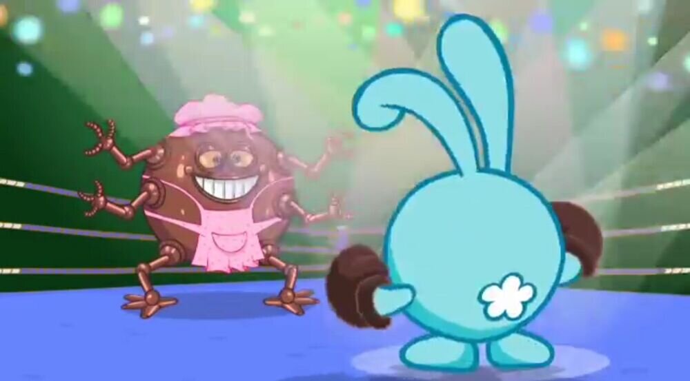Биби достал огнемёт и начал им палить в Лосяша. Лосяш прицелился и выстрелил из дробовика. Мощь бы такая, что он протаранил дом с одной и другой стороны. Биби сломался.