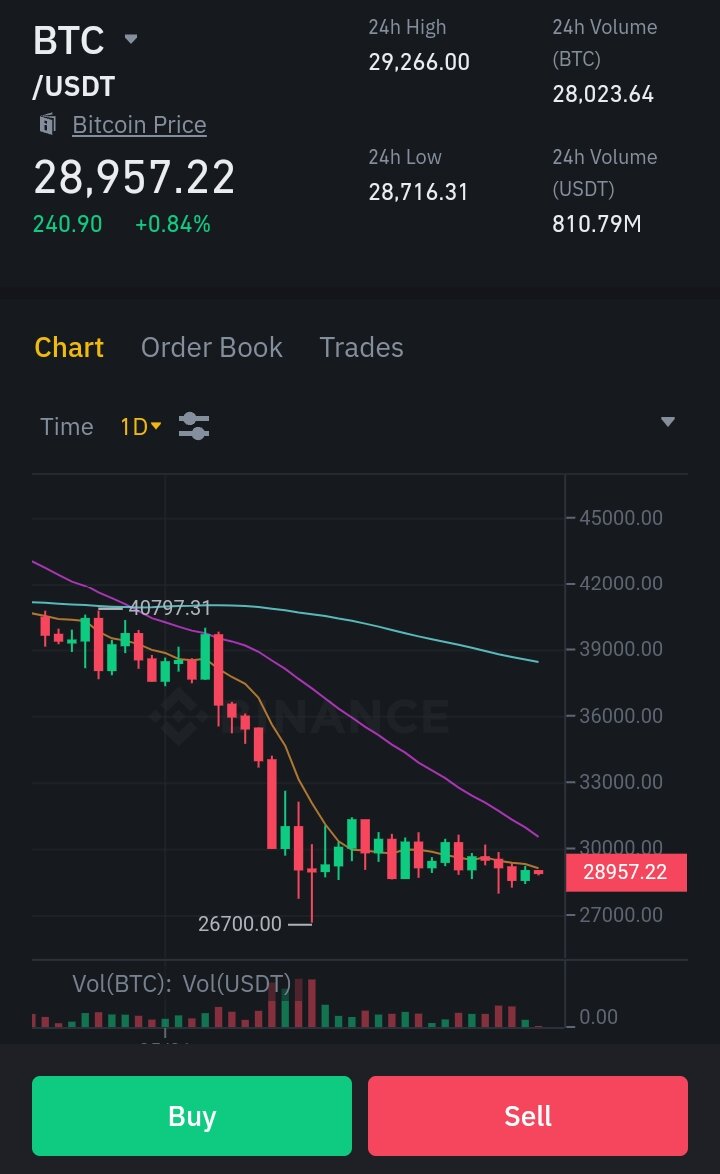 Вопрос: Криптовалюта Bitcoin (BTC/USDT) торговалась на уровне 28957.24 USDT в 03:00 PM UTC на бирже Binance в субботу, 28 мая. Будет ли BTC/USDT торговаться выше уровня в 31852.96 USDT (+10.0%) раньше, чем упадет ниже 26061.52 USDT (-10.0%)? (проголосуйте 51-100% - за вариант роста или 0-49% - за вариант падения) Индикатор: 79.94% (индикатор указывает на рост цены) --------------- Как интерпретировать результаты? [65%...80%] - индикатор с высокой вероятностью; событие произойдет с высокой степенью вероятности