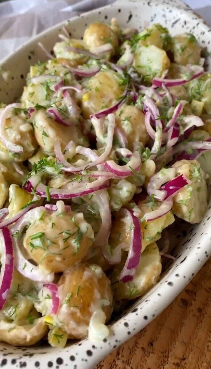 Простая, но очень вкусная еда. А какой аромат ! Ингредиенты : Для соуса : Картофель очистить и отварить в подсоленной воде до готовности. Нарезать солёные огурчики, тонко полукольцами лук и мелко укроп. Для соуса хорошо смешать оливковое масло, горчицу, майонез и лимонный сок. В миску выложить отваренный молодой картофель, солёные огурчики, лук, укроп и заливаем соусом Вкусный и ароматный салатик готов. Его можно подавать как полноценное блюдо. Приятного аппетита ! Пожалуйста, подпишитесь на мой канал, поддержите меня, спасибо ❤️🤗