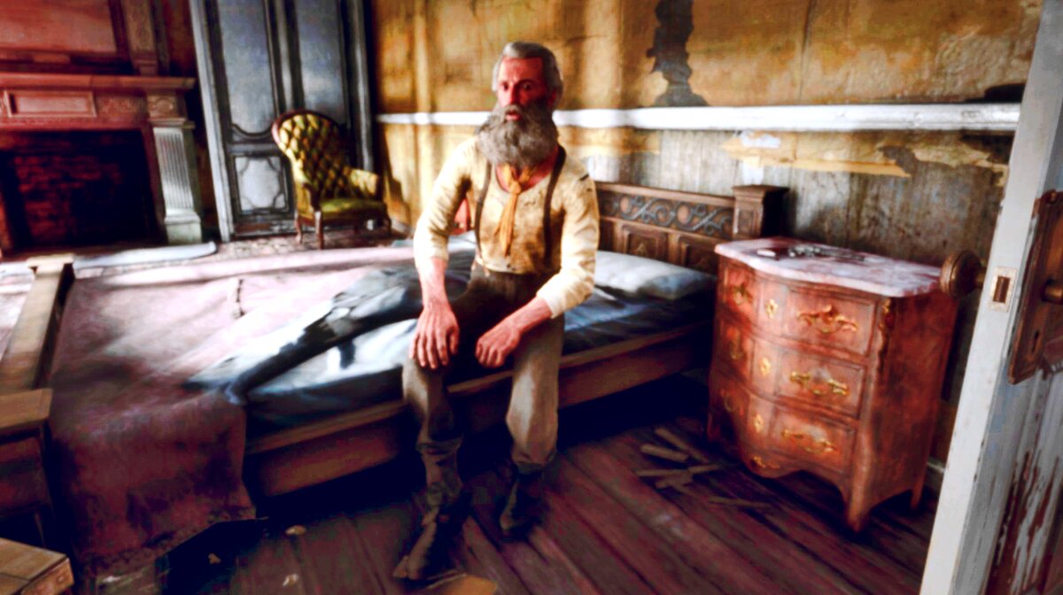 Квест 3-й главы игры. … На банду Датча посыпались несчастья одно за другим: Шон погиб в перестрелке с Греями, Джек похищен, а агенты Пинкертона вышли на след банды и вот-вот появятся на полуострове Клеменс с хорошо вооружённым подкреплением… Лагерь банды нужно было срочно перебазировать в другое место, и тут Артур вспомнил их с Ленни налёт на лагерь шайки Налётчиков из Леймона, когда они угнали целую повозку с оружием. Налётчики скрывались в заброшенном плантаторском поместье Шейди-Бель, находящимся в глухомани: хорошее место для тех, кто не ладит с законом… Вместе с Джоном они отправились на разведку. Издали Шейди-Бель выглядел заброшенным, но всё-таки Налётчики из Леймона ещё были там, хоть и небольшая горстка. Перестреляв нескольких боевиков во дворе, Артур с Джоном ворвались внутрь и принялись обыскивать комнаты в поисках выживших. В одной из комнат второго этажа заброшенного особняка Артур обнаружил сидящего на кровати старика. Это был сам глава банды Налётчиков из Леймона. Ра