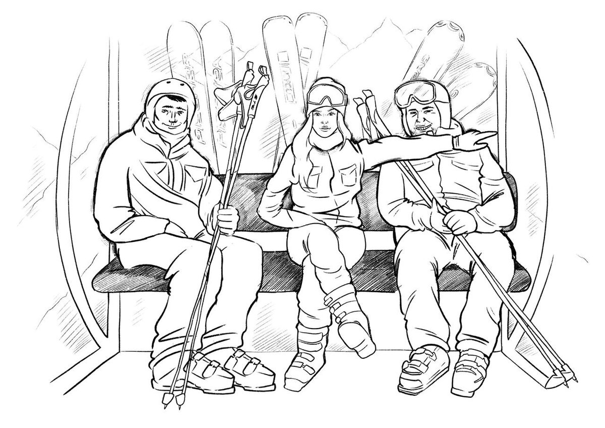 Поговорив по рации, друзья наконец-то обратили внимание на своих попутчиков по кабинке подъемника.