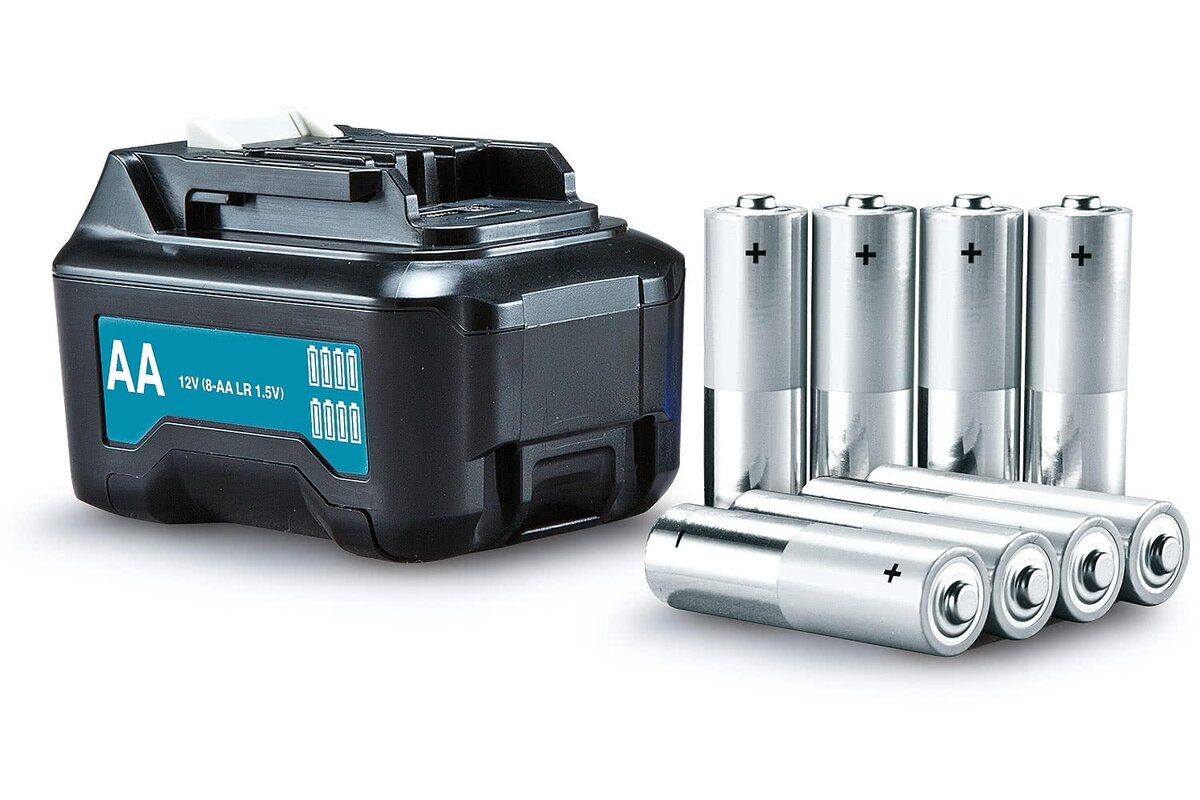 Адаптер на 12 вольт для многолинейных лазеров SK700GD и SK700G. В этот адаптер необходимо установить 8 батареек AA 1,5 В. Затем адаптер можно разместить на лазерном уровне вместо аккумулятора. Модели уровней с которыми работает адаптер - SK40GD, SK20GD, SK10GD, SK700GD, SK700D, SK312GD, SK209GD. Срок службы ADP09 в связке с SK700D составляет около 11 часов, с SK700GD — 7 часов при использовании батарей типа АА емкостью 2000 мАч. Адаптер имеет кнопку включения/выключения. После использования адаптер следует перевести в выключенное положение, чтобы предотвратить глубокую разрядку батареек типа АА. Невозможно разместить этот адаптер на других лазерах Makita, кроме моделей SK40GD, SK20GD, SK10GD, SK700GD, SK700D, SK312GD, SK209GD. Адаптер также нельзя использовать в сочетании с другими инструментами CXT. Это невозможно благодаря стопорному ребру на адаптере. Характеристики: Модель ADP09 представляет собой батарейный блок типа AA, предназначенный для питания лазера, работающего от литий-ион