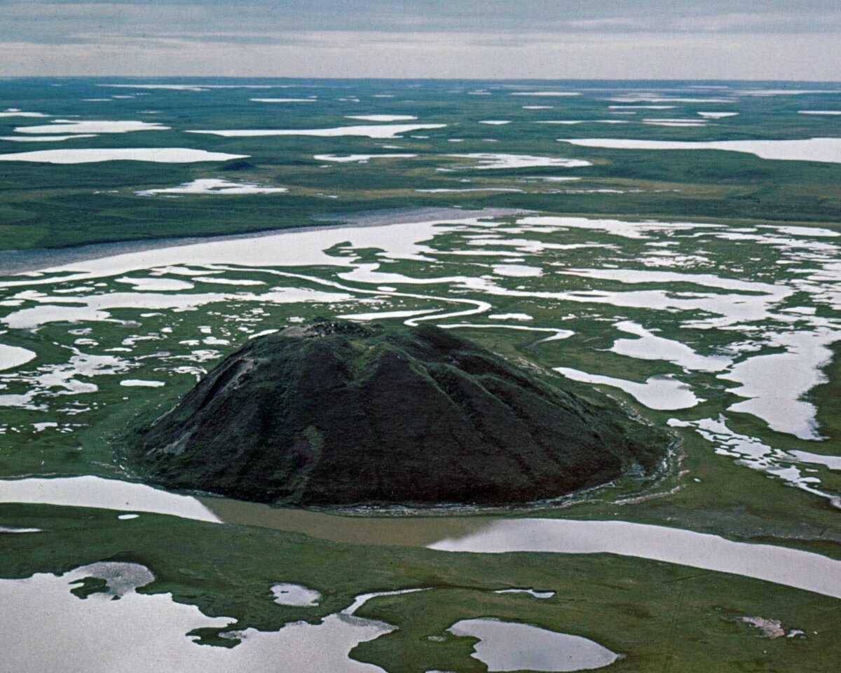 БУЛГУННЯХИ, или гидролакколиты – бугры с ледяным ядром, высотой до 30-40м., диаметром 100-150м. Булгунняхи появляются там, где очень низкие температуры и вечная мерзлота среди заболоченных торфяных равнин. Они возникают в результате вспучивания поверхности земли при замерзании воды, которая находится в озёрных котловинах под торфом. На севере можно встретить небольшие одно- и двухлетние бугорки высотой около 1м. А также высокие, покрытые трещинами бугры, продолжительность существования которых измеряется сотнями и тысячами лет. Подобное явление наблюдается в нашей стране в Якутии, на Чукотке. Также булгунняхи можно встретить на Аляске.