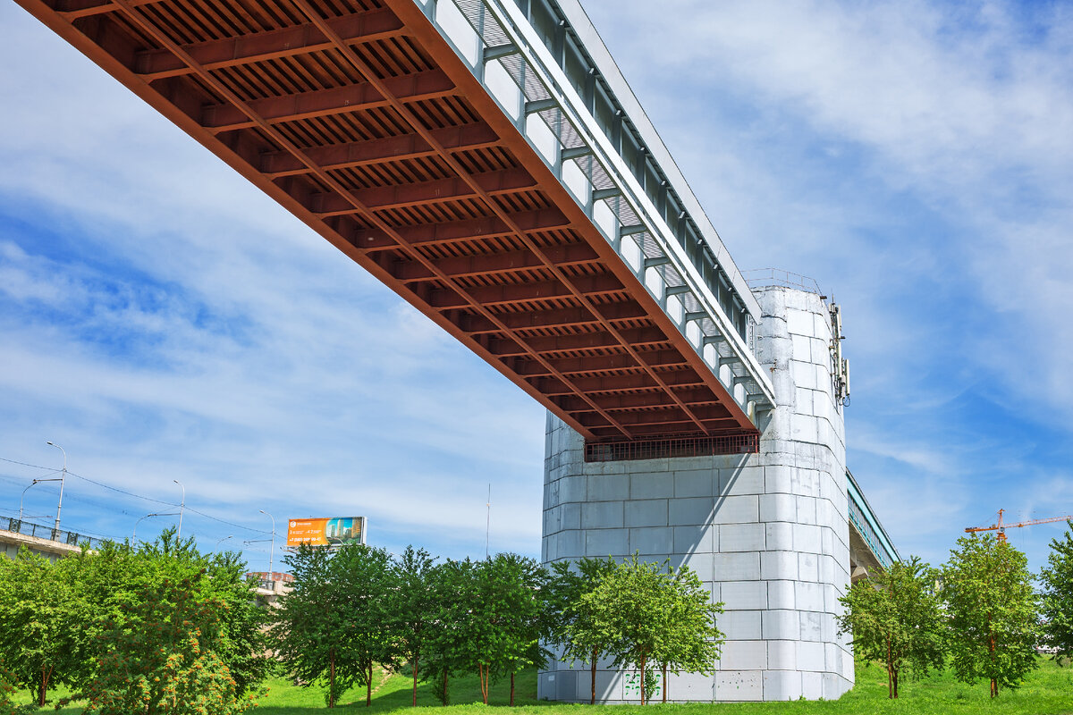 Новосибирский метромост через реку Обь. Новосибирск, Западная Сибирь России. Фотографии июля 2017 года.
