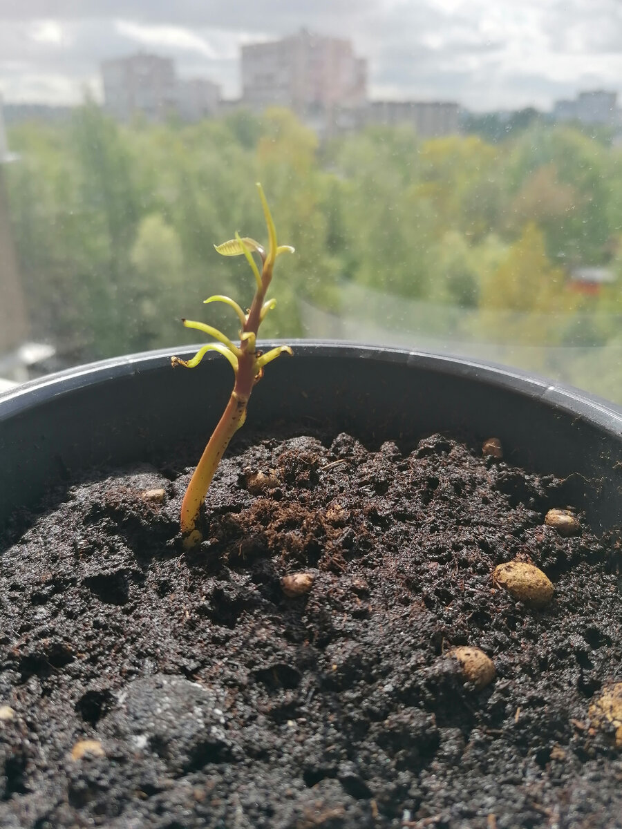 Вообще его никто не планировал. В декабре 2021 года косточку от съеденного манго запихнули в фикус, с целью удобрить. И вот в конце мая смотрю на свой любимый фикус и вижу маленькое лохматое чудовище, ну думаю дети какую нибудь игрушку положили. Потом смотрю... Батюшки, что-то выросло. Стала пальцем подкапывать, и поняла, что это неожиданный малыш - Манго.