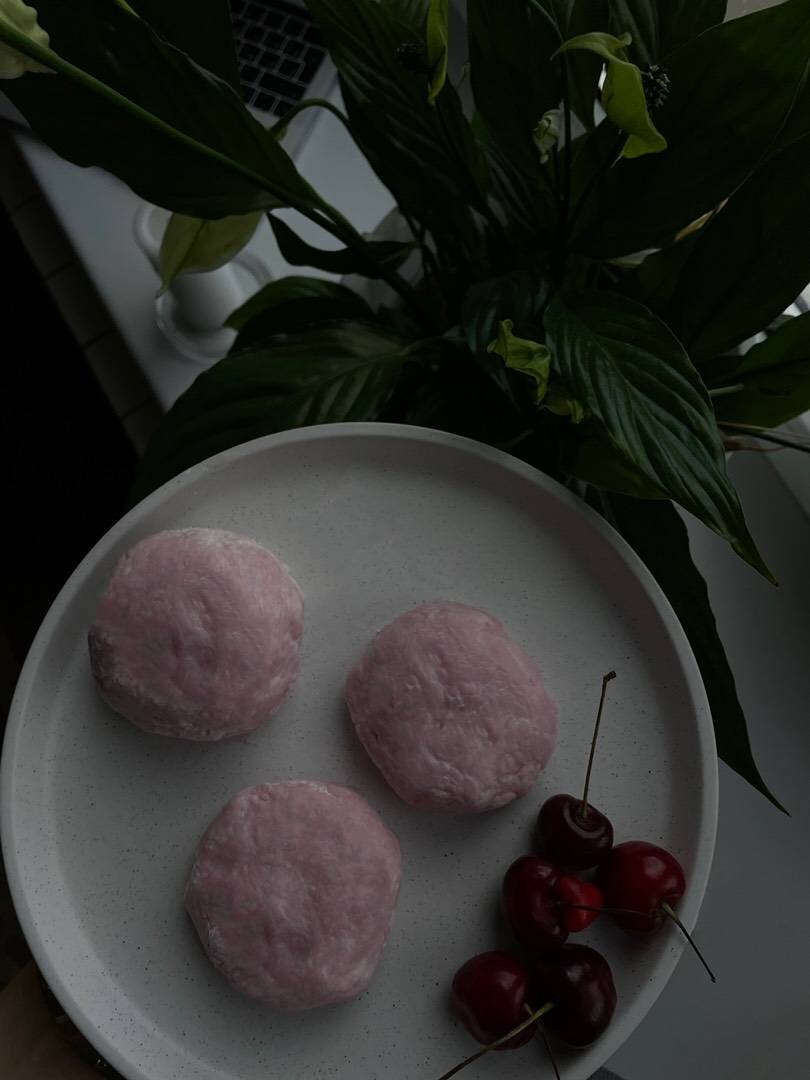 #пп #десерты Ингредиенты: Тесто, холодной воды, рисовой муки, кукурузного крахмала, сахарозаменитель , сок свёклы или краситель пищевой, Начинка, творог, сахарозаменитель или сироп Способ приготовления: 1.В кастрюлю наливаем 0,5 воды и включаем медленный огонь. 2.Всыпаем муку и крахмал, сахарозаменитель. 3.Медленно помешиваем, наблюдаем, как масса затвердевает на глазах!! 4.Присыпаем стол крахмалом и кладём на него тесто. Тесто будет липким! Но! Не переживайте, постепенно обваливайте в крахмале и все будет😍. Далее формируем шарики и кладём начинку! Затем в холодильник на 15-20 минут🥰.
