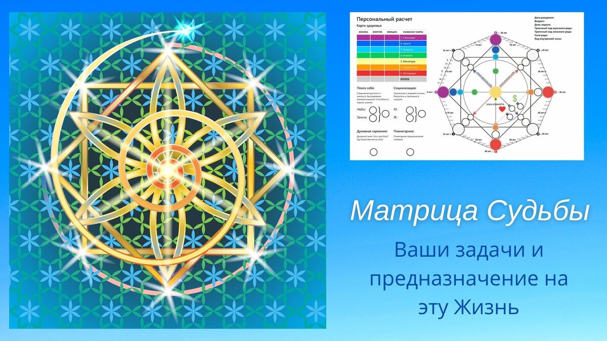 22 кода Судьбы, 22 грани проработки человеческой Души наглядно показывает "Матрица Судьбы", нумерологический метод познания себя и задач своей нынешней жизни.