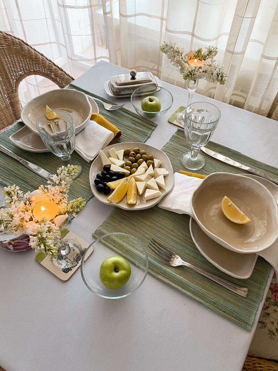 Для вдохновения идея летней сервировки. Навеяно воспоминаниями о поездке на Кипр, нашлись дома даже пробковые подставки, привезённые оттуда. Пока накрывала вспоминала национальную кухню, как пробовали картофельную мусаку, прям очень захотелось приготовить. Однажды пошли на ужин в ближайший ресторан, сплошь увитый виноградными лозами, пока мы выбирали блюда, хозяин любезно срезал нам пару гроздей винограда. А заказали мы тогда, как сейчас помню, долму с бараниной. Муж уговаривал меня ее взять, а я отказывалась, был опыт попробовать, и она мне ужасно не понравилась. Но там это было нереально вкусно. #сервировка стола #украшение стола #декор стола #сирень #подсвечник