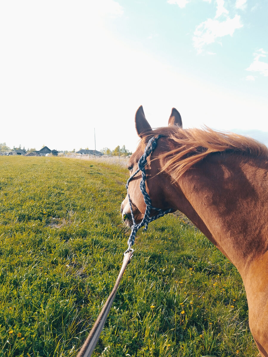 Дневник реабилитации и адаптации вновьприбывшей терской кобылы. Начало в предыдущих постах. Итак, я взяла Бу и повела в ближайшее наше полюшко. Это первых выход за пределы хозяйства с человеком. Ее побеги я не считаю. Бу подозревала каждый холм, каждую травинку, была напряжена. В принципе, ожидаемо, новая местность для лошади, да еще с такой психикой. Из всех наших терских лошадей на новой местности показывали настороженность две лошади - Сонечка, и баба Бюрго. Остальные - танки. Малец возрадовался, и носился, как оголтелый. На полянке слегка размяла Бу рысью, и десять минут разрешила попастись. В целом, Бу довольно быстро привыкает, но ее пугливость и недоверие меня расстраивают.