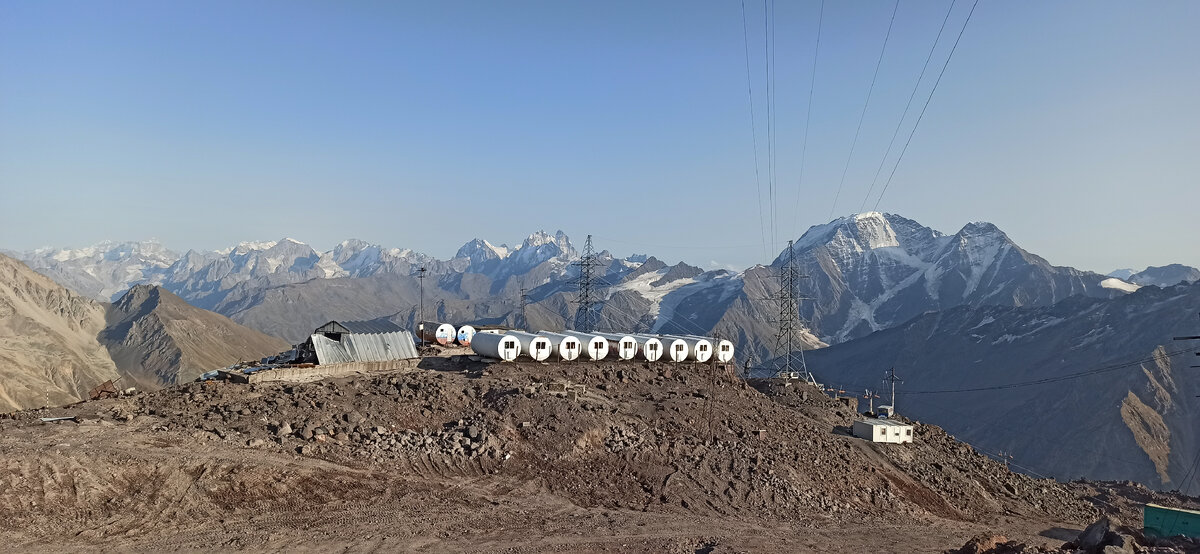У подножия величественного Эльбруса наша группа оказалась на пятый день. Добравшись до места, мы высадились из машины и сразу отправились к нижней станции местной канатной дороги. Инструкторы распределили по весам и раздали общественное снаряжение, а также выдали ски-пасс для прохода через турникеты. Мы поднимались на максимальную высоту и преодолели три ступени подъёма и две промежуточные станции. Чем выше поднимались, тем больше захватывало дух от красоты и великолепия гор. Погода продолжала радовать - ярко светило солнце, ветер был, но умеренный, видимость идеальная, небо чистое. Кстати, когда я проходил турникет на второй станции - умудрился зацепиться за него толстым пуховиком, взятым в аренду, порвал ткань возле кармана и следующие несколько часов боролся с вылетающим из пуховика пухом. Да, такой неприятный момент случился уже в самом начале восхождения, но повезло, что у нашего инструктора оказался с собой армированный скотч, и уже в скором времени проблема была решена. Спустя