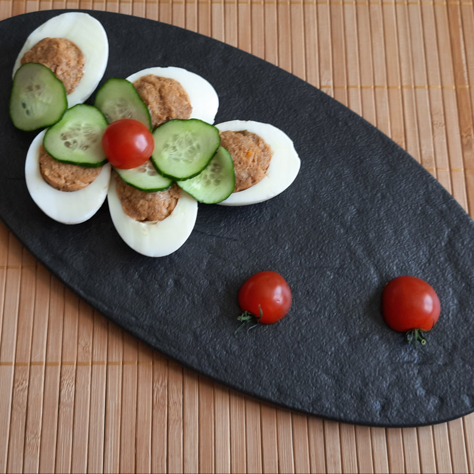 #вишиванка Ингредиенты: печінка качина чи будь-яка інша (можна готовий паштет), яйця, Сіль , майонез чи соусу за смаком, зелень чи овочі для прикраси, рослинної олії, борошна для паніровки Способ приготовления: Печінку миємо та паніруємо в борошні. Солимо. Смажимо на рослинній олії з обох боків до готовності. Охолоджуємо. Яйця відварюємо в підсоленій воді, очищаємо. Дістаємо жовтки. Жовтки поєднуємо з печінкою та подрібнюємо до пюре. За бажанням додаємо майонез чи інший соус. Білкові половинки наповнюємо паштетом і прикрашаємо за бажанням. Смачного!