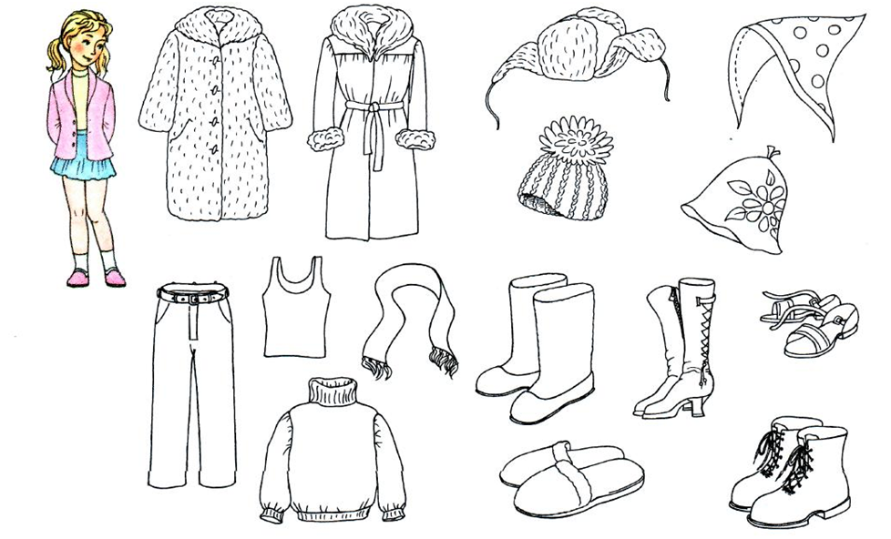 – Сегодня на уроке мы будем говорить о зимней одежде, рассмотрим, каких видов она бывает, как необходимо за ней ухаживать. Вы научитесь выбирать одежду в соответствии со временем года и погодой, а еще мы поговорим о занятиях людей зимой.