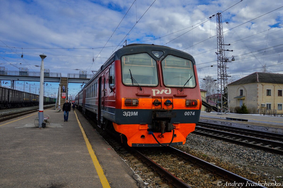 На майских праздниках вернулся на станцию Балезино. Это место одно из тех, где находиться всегда приятно, и оно никогда не надоедает. Электропоезд ЭД9М-0074 сообщением 6402 Яр-Балезино прибыл на конечную станцию. Через несколько минут он отправится в Яр. Нечетное направление. Вокзал. Паровоз на площади у вокзала. Расписание поездов дальнего следования. Восточное направление. Расписание поездов дальнего следования. Нечетное направление. На вокзале оформлен стенд памяти строителям железной дороги Ижевск - Балезино (Ижевск - Пибаньшур). Электронное табло. Электровоз 2ЭС5К-448 в составе сдвоенного грузового поезда, следующего на запад. Территория у пункта технического обслуживания локомотивов. Западный парк. Электровоз ВЛ11-355/153. Еще один ВЛ11-631/636. На время покидаю железную дорогу и дохожу до сквера, расположенного рядом с храмом. Казанский храм. Возвращаюсь на железную дорогу. Движение поездов продолжается. 2ЭС10-174. У пункта технического обслуживания локомотивов всегда