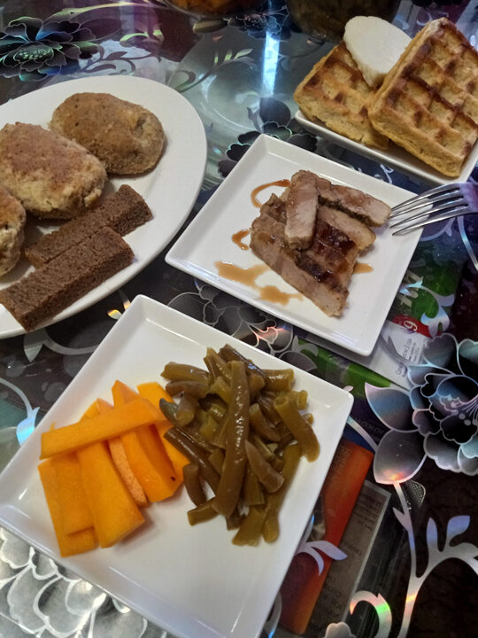 Наготовила еды на день, а может, и на два, как дело пойдет! На завтрак: 250 г мяса гриль, к нему ферментированные тыква и зелёная фасоль. Ох, и подсела я на эту ферментацию, хочется экспериментировать со всеми овощами и фруктами. Вся моя семья ест с удовольствием! Также к завтраку за 20 минут приготовила в духовке вафли из овсяной и кокосовой муки. Съела одну с кусочком Адыгейского сыра. На обед сварила борщ из капусты и белой фасоли на курином бульоне. Зажарку не делаю: лук, маленькую морковку и половинку свеклы тушу на 1 ст. л. растительного масла и водичке. Люблю, когда много капусты, перца болгарского и зелени всякой. На ужин хотела потушить рыбку с овощами, но случайно наткнулась на рецепт рыбных котлет из отварной рыбы. Дай, думаю, и я попробую их приготовить, хотя никогда не любила рыбные котлеты, не понимала я их, и все время они у меня горчили и были сухие. Оказывается, обязательно нужно убирать черную внутреннюю пленку в брюшке - она даёт горечь... Век живи - век учись! Рецеп
