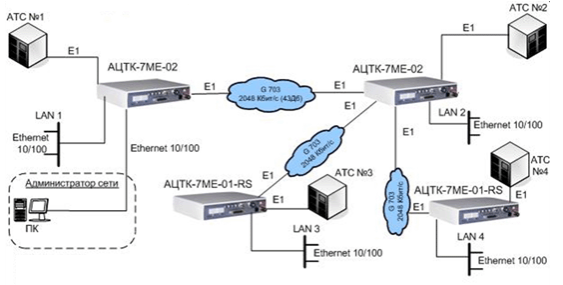 Многообразие режимов синхронизации, типов ИКМ потоков и способов передачи сигнальной информации позволяет использовать АЦТК-7МЕ как автономно, так и в составе оборудования передачи информации сетей PDH, SDH и сетей передачи данных.