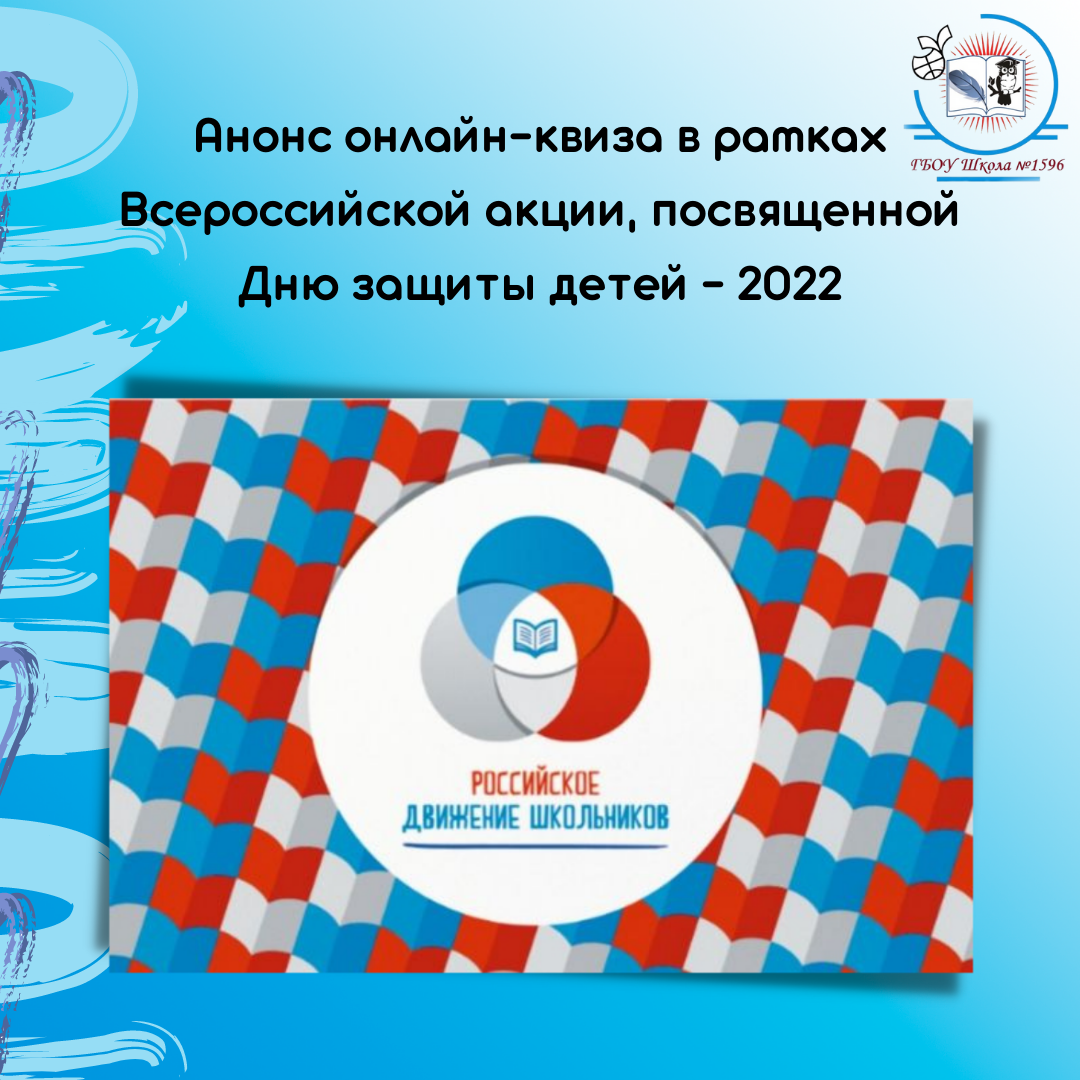 1 июня одновременно во всех субъектах РФ в 12:00 по Москве пройдет онлайн-квиз ко Дню защиты детей. Формат участия в квизе индивидуальный. Подсчет результатов ведется автоматической системой проведения. В ходе квиза участники отвечают на поставленные вопросы. Пять победителей, набравших наибольшее количество баллов в квизе, получат памятные подарки от Российского движения школьников. Более подробную информацию можно найти на странице акции: 🔗 рдш.рф/competition/2527 Поучаствовав в конкурсе, вы сможете выиграть призы от РДШ, проверить свои знания, а еще напомнить многим о том, что День защиты детей – важный праздник, который напоминает детям об их правах, а родителям об их обязанностях. Желаем успехов и креатива! #ДОНМ #ШколыКолледжиМосквы #Школа1596 #РДШ