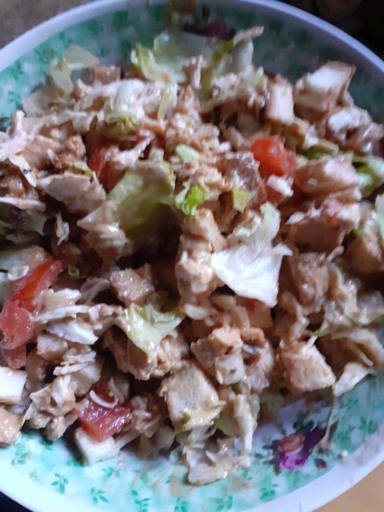Быстро и Сытно🥰 Ингредиенты: Филе Куриное Жареное, Салат Айсберг, Большой Помидор, Сыр Российский, Белого Тостового Хлеба, Соус Для Цезаря, Майонез, Соус Соевый, Горчица Васаби, Чеснока, Оливковое Масло, Паприка для Курицы, Масло для жарки Способ приготовления: Куриное Филе обжариваем с паприкой на масле минут 20, остужаем. Салат Айсберг, Помидор, Филе Куриное и Белый Хлеб нарезаем не крупно. Сыр Натираем на терке. Для соуса в Майонез добавим Соевый Соус, Горчицу Зеленую Васаби, Оливковое масло и измельченный чеснок. Все хорошо взбиваем. Я вручную взбивала. Заправляем Салат Цезарь.🥗🥬🍗🧀🍅🍞