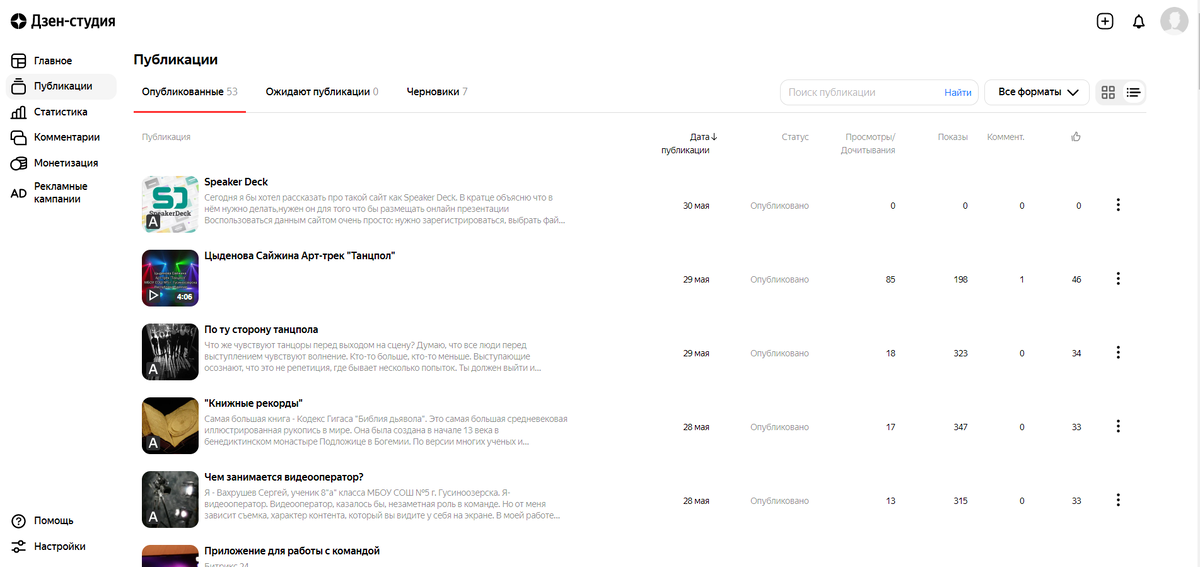 1. Кол-во постов, опубликованных в блоге за период проведения информационной кампании (с 20 по 30 мая) - 53 2. Кол-во пользователей, подписавшихся на ваш блог за период проведения информационной кампании (с 20 по 30 мая) - 276 3. Кол-во лайков на самом популярном посте вашего Yandex.Zen блога, опубликованном в ходе информационной кампании (с 20 по 30 мая) - 186 4. Кол-во просмотров на самом просматриваемом видео вашего блога (учитываются видео, опубликованные в период с 20 по 30 мая) - 187 ссылка на канал: https://zen.yandex.ru/id/628b2a8e04b32b0eb8420891