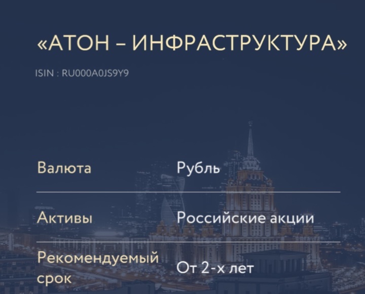 ✅Продолжаю тему актуальных идей от брокеров У Атона есть неплохой фонд на российские акции (фонды тоже можно покупать частями) Что нам предлагают? Фонд «Атон - Инфраструктура» Ориентирован исключительно на Российские акции, которые в среднесрочной и долгосрочной перспективе могут опережать инфляцию ✔️ Основные моменты: Результаты фонда: На мой субъективный взгляд - неплохая идея, особенно в текущих реалиях👌 *не является индивидуальной инвестиционной рекомендацией #инвестиции #доход #инфляция #рубль #инвестиционный фонд #инвестиционныйфонд