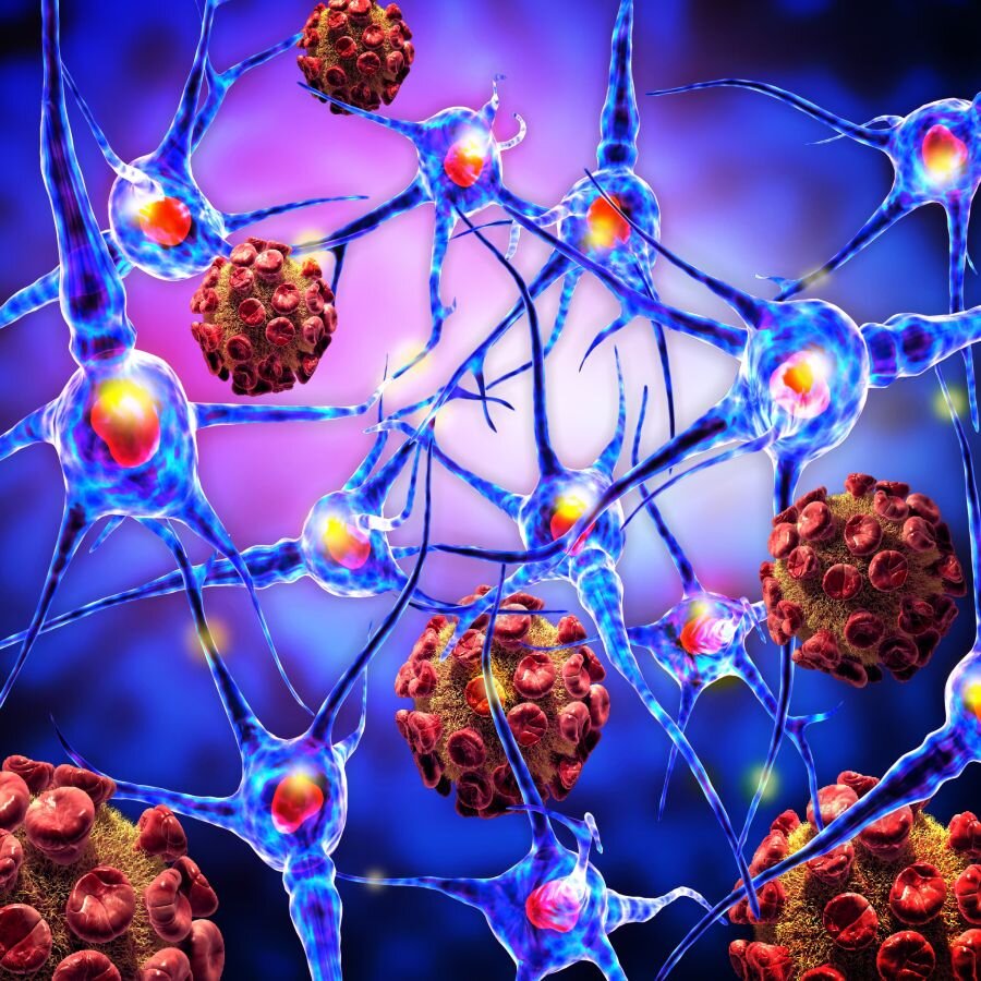 Например, при тератоме яичника (связанной с NMDA-энцефалитом) сама опухоль содержит зрелую или незрелую нервную ткань. Антигены, высвобождаемые умирающими опухолевыми клетками, могут поглощаться, обрабатываться и презентироваться антигенпрезентирующими клетками в регионарных лимфатических узлах для активации Т-клеток. Кроме того, эктопические зародышевые центры были описаны в тератомах яичников у некоторых пациентов с NMDAR-энцефалитом. Они могут быть источником продолжающегося производства аутоантител.Важно отметить, что даже несмотря на то, что онконевральные антигены встречаются часто, паранеопластические синдромы развиваются лишь у небольшой части онкологических больных (<1%) . Это может быть связано с тем, что для активации аутореактивных Т-клеток могут потребоваться мутации в опухолевых антигенах (чтобы иммунная система воспринимала их как «чужеродные» антигены) и, во-вторых, эффективная антигенная презентация опухоли. пептида к Т-клеткам также требует совместимости с молекулами MHC пациента.
