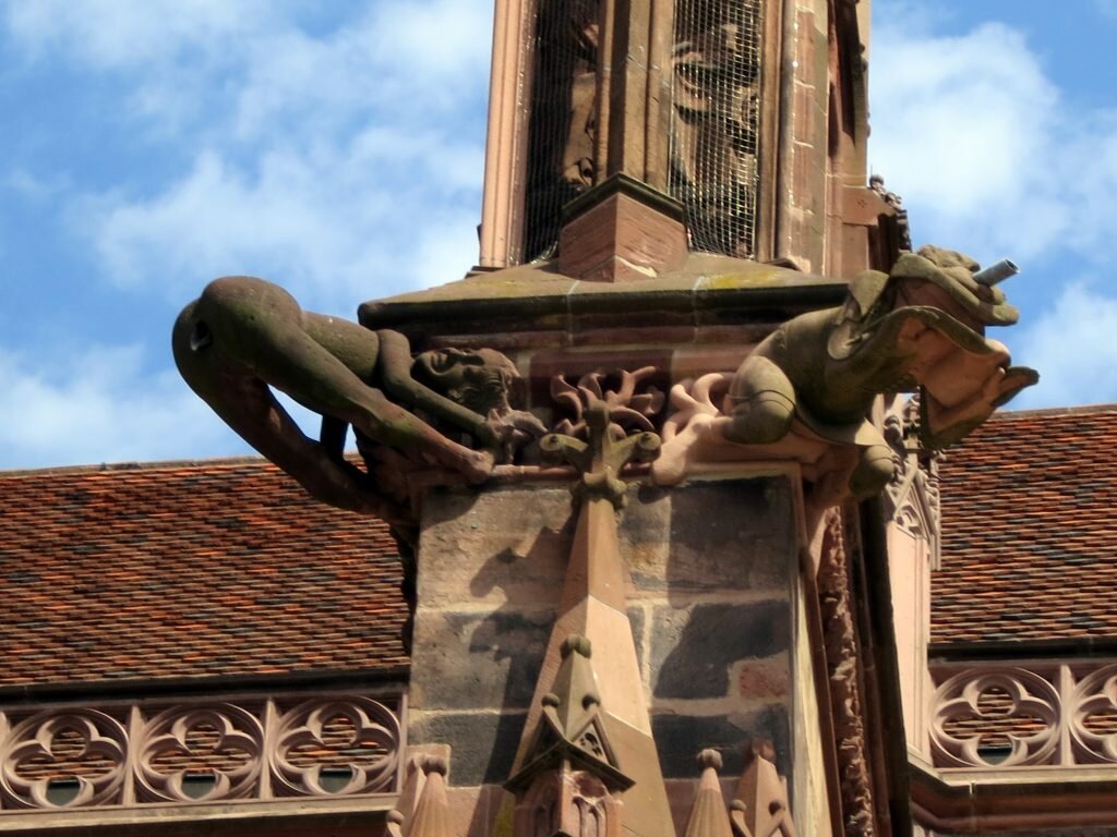 Здравствуйте читатели «Фабрики мистики». На протяжении всей истории горгульи чаще всего ассоциировались с образами ужасающих крылатых демонов и монстров. Зачастую внешний вид их прямо скажем - ужасает. Однако существуют и другие, чья особенность заключается не в ужасе, а в их ироническом характере – призванном вызывать насмешки. Так обстоит дело с горгульями, которых можно найти на церкви Святого Бенедикта в Глинтоне (Кембриджшир) и в соборе Фрайбурга в Германии. Оба этих храма имеют один и тот же странный дизайн горгульи: изображение наклоняющегося человека, выставив... пятую точку наружу. В качестве дополнительной детали каменщик, создавший эту горгулью, соорудил короткий желоб в горгулье, чтобы в дождливые дни она выглядела так, как будто справляет нужду. В целом, это бесстыдно грубая горгулья и она далека от стереотипного представления как о кошмарных монстрах. Существует древняя легенда, которая объясняет мотивацию каменщика вырезать горгулий Глинтона и Фрайбурга таким образом. Ка