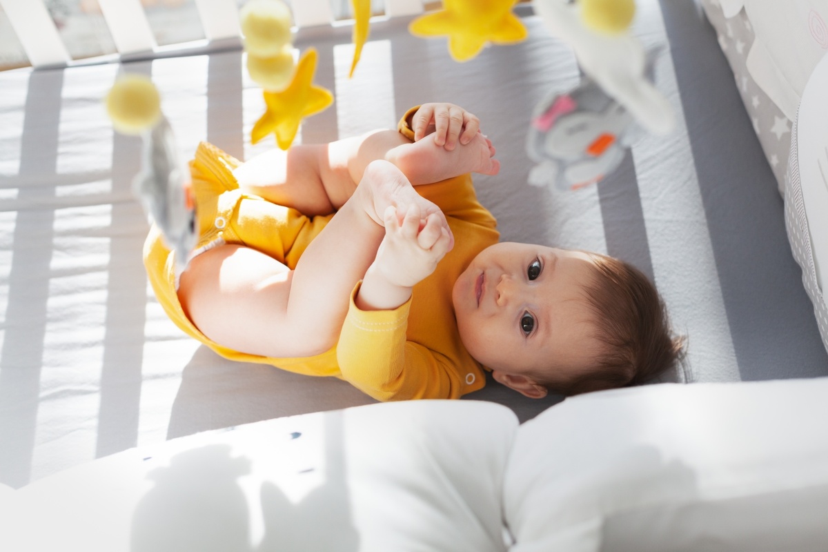 При рождении дети предпочитают яркие цвета и высокую контрастность. Поначалу малыши предпочитают геометрические узоры с полосками и углами. Вскоре они отдают предпочтение круговым узорам, таким как яблочко. Имейте это в виду, выбирая мобиль для кроватки вашего ребенка.