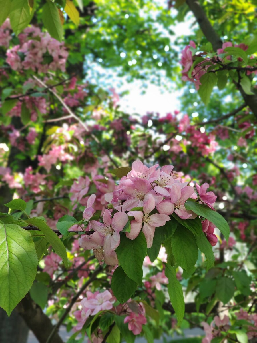 До наступления календарного лета осталось каких-то два дня, а мы и весны, считай, еще толком не видели. Может быть, именно поэтому особенно сильно радуют глаз и манят любые цветущие растения. "Когда яблони цветут, всем девчонкам нравится", - как пелось в известной песне, а уж когда яблони покрыты ярко-розовыми, почти пурпурными цветами, противостоять этому может только каменное сердце. Особенно популярными у ландшафтных дизайнеров Москвы последнее время стали яблони Недзвецкого. Мне кажется, что раньше, чтобы такую яркую яблоню увидеть, нужно было ехать чуть ли в предгорье Тянь-Шаня - откуда этот сорт к нам и привезли. Теперь же красочную, наполненную розовым светом и цветом фотосессию, можно сделать и без лишних усилий, в самом центре столицы. Мои любимые места в Москве, где можно полюбоваться цветением и почувствовать себя как в райском саду -это Хитровская площадь и Екатерининский парк. Также яблони Недзвецкого можно увидеть В общем, рекомендую включить саундтреком в наушника