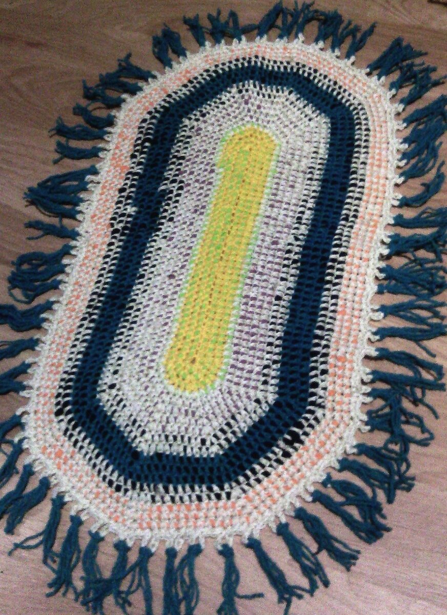 Дачная страда началась. Коврики всем стали нужны. У меня неплохой бартер: зимой на досуге вяжу коврики, к лету отдаю нуждающимся, по осени мне везут дары природы))) Я вяжу очень быстро. Как правило, такой коврик занимает у меня 3-4 часа. Но это без подготовки пряжи. Она столько же примерно требует времени. В этих ковриках дольше всего подготовить трикотажную нить из отслуживших свое футболок и т.д: постирать вещи, высушить, отрезать швы, а потом нарезать полотно на безотрывные полосы. Служат такие коврики долго, спокойно переживают машинную стирку на 30 градусах. В квартире я их тоже эксплуатирую для зооуголка))) Коты и собаки любят на них возлежать.
