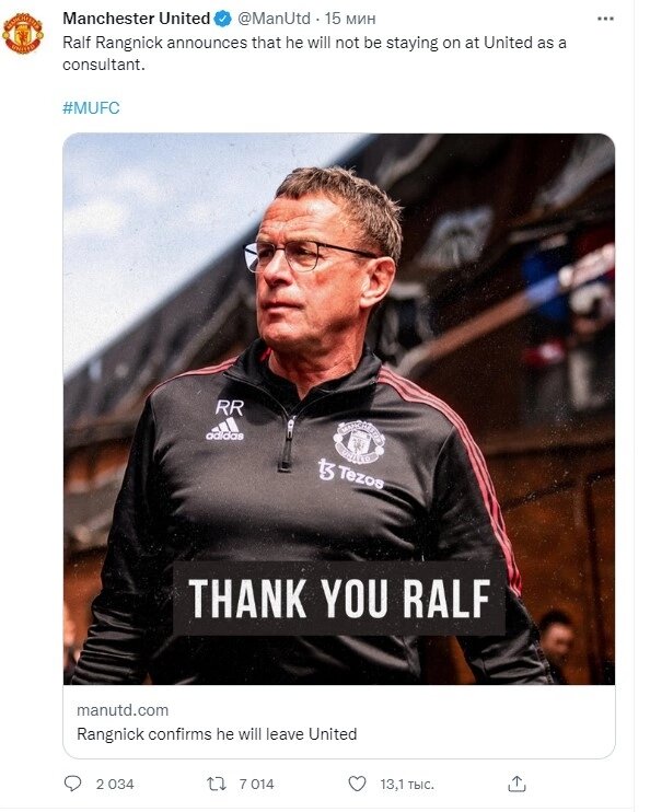 Ральф Рангник объявляет, что не останется в «Юнайтед» в качестве консультанта