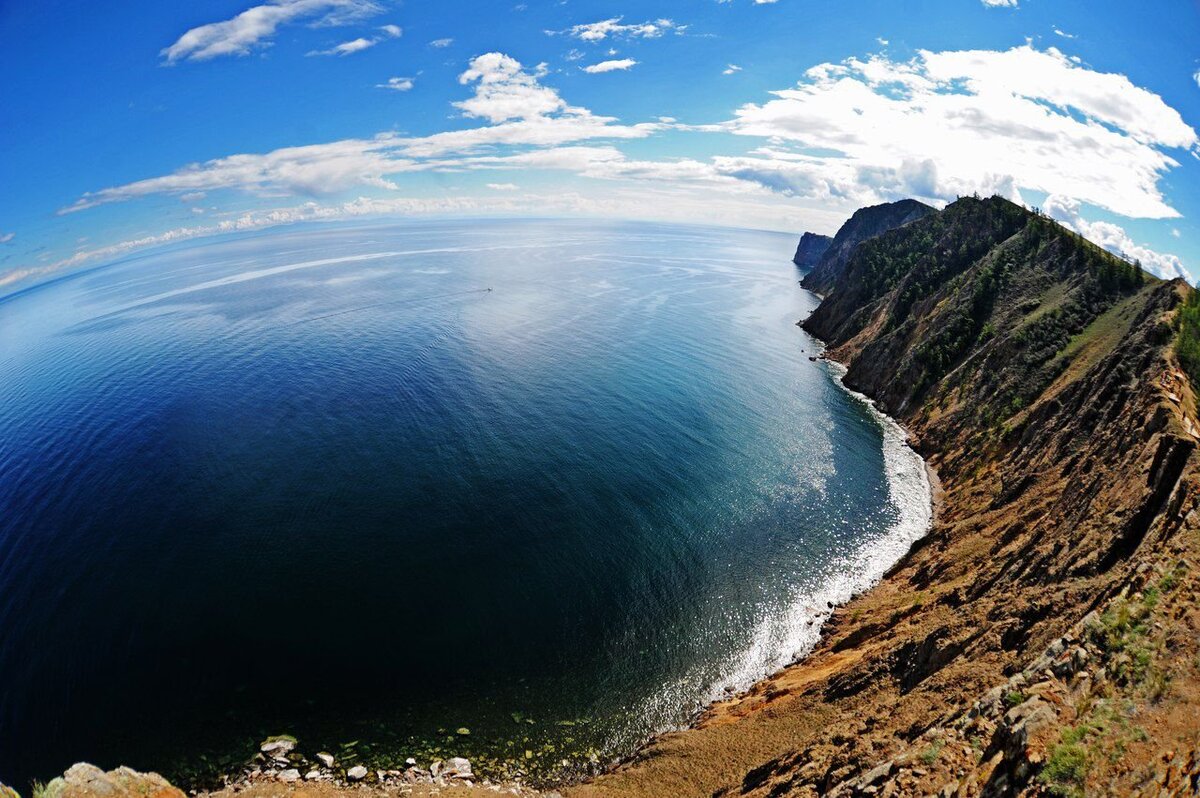 Байкал – одно из самых известных озер в мире. О нем ходят легенды. Оно восхищает и удивляет путешественников, туристов. По размеру – это огромное море. Площадь водной поверхности свыше 31 тыс. км², а протяженность береговой линии 2100 км. Поэтому оно входит в семерку крупнейших озер планеты. Поражают не только размеры водной глади. Очень красивы и ландшафты. Озеро в форме вытянутого полумесяца окружено скалами, лесистыми горами, утесами. Имеются необыкновенной красоты бухты с песочными пляжами. Впечатляют многочисленные острова на озере, особенно самый крупный Ольхон.