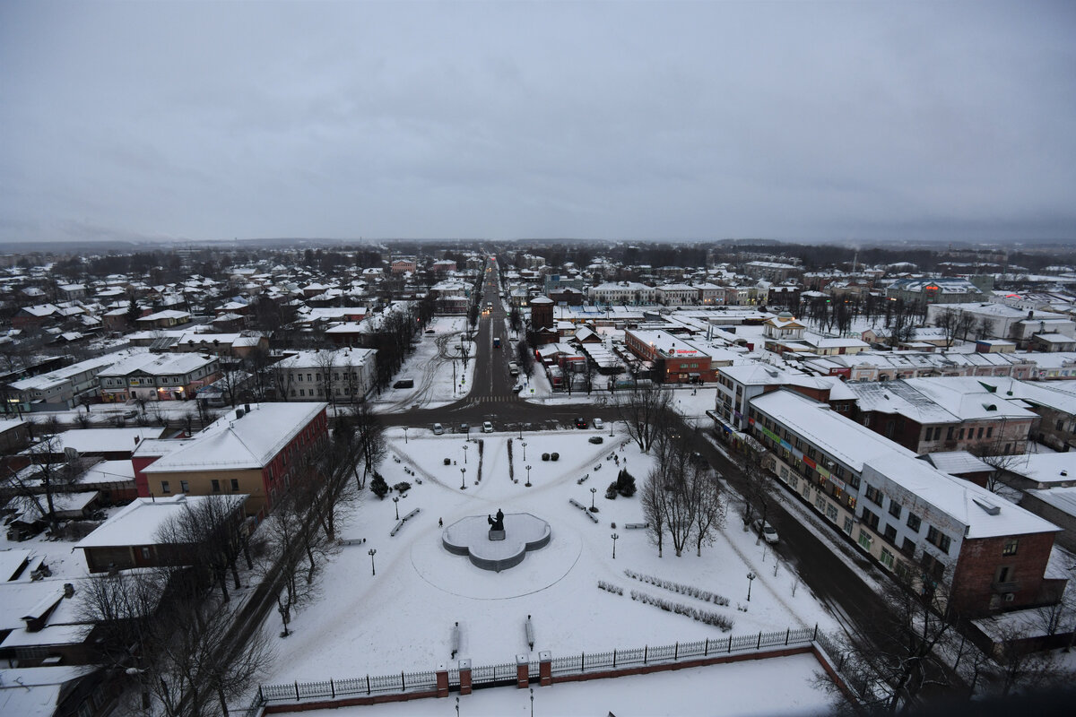 На колокольню можно подняться, с нее открываются прекрасные виды на город и его окрестности. Пока мы были наверху, не на шутку разыгралась метель. Вообще, в этот день у нас погода менялась несколько раз: от солнышка до снежной метели:)