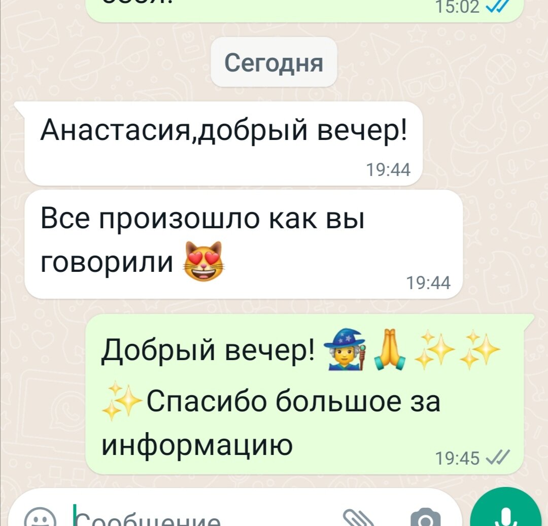 Ваши комментарии после гаданий! Спасибо большое, что пишите мне по обратной связи после гаданий. Обращаясь ко мне, вы никогда не встретите ни малейшего осуждения или критики. Все анонимно и конфиденциально. Люди обращаются с разными вопросами и проблемами, кому-то нужны советы. Карты всегда объективно видят ситуацию, карты всегда говорят правду. Приёмы веду каждый день онлайн. Потомственная ворожея Анастасия Викторовна.