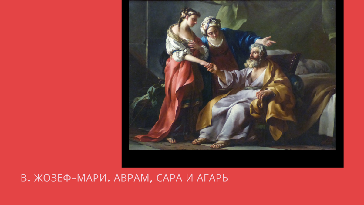 В шестнадцатой главе Сара, оставаясь бесплодной, предложила мужу вместо себя, для произведения потомства, служанку египтянку Агарь.