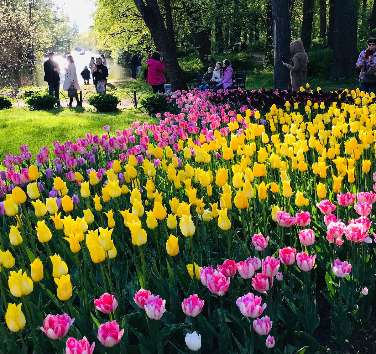 и не полюбоваться на море чудесных цветов? Они расцветают к дню рождения города. Каждый год Фестиваль Тюльпанов имеет свою тематику. Так, в 2020 году он был посвящён художникам-авангардистам, в 2021 году – поэтам-шестидесятникам. В этом году герои фестиваля – архитектор Карл Росси (в связи с 200-летим Елагинского дворцово-паркового ансамбля) и император Петр I (по случаю 350-летия со дня рождения). В выходные дни здесь можно не только окунуться в мир разнообразных цветочных оттенков и ароматов, но и послушать живую музыку, лекции флористов. В будние дни, полюбовавшись цветами, можно погулять по парку, покормить белок, поесть горячие пышки. Несколько фактов о петербургском Фестивале Тюльпанов-2022 Все фото автора.