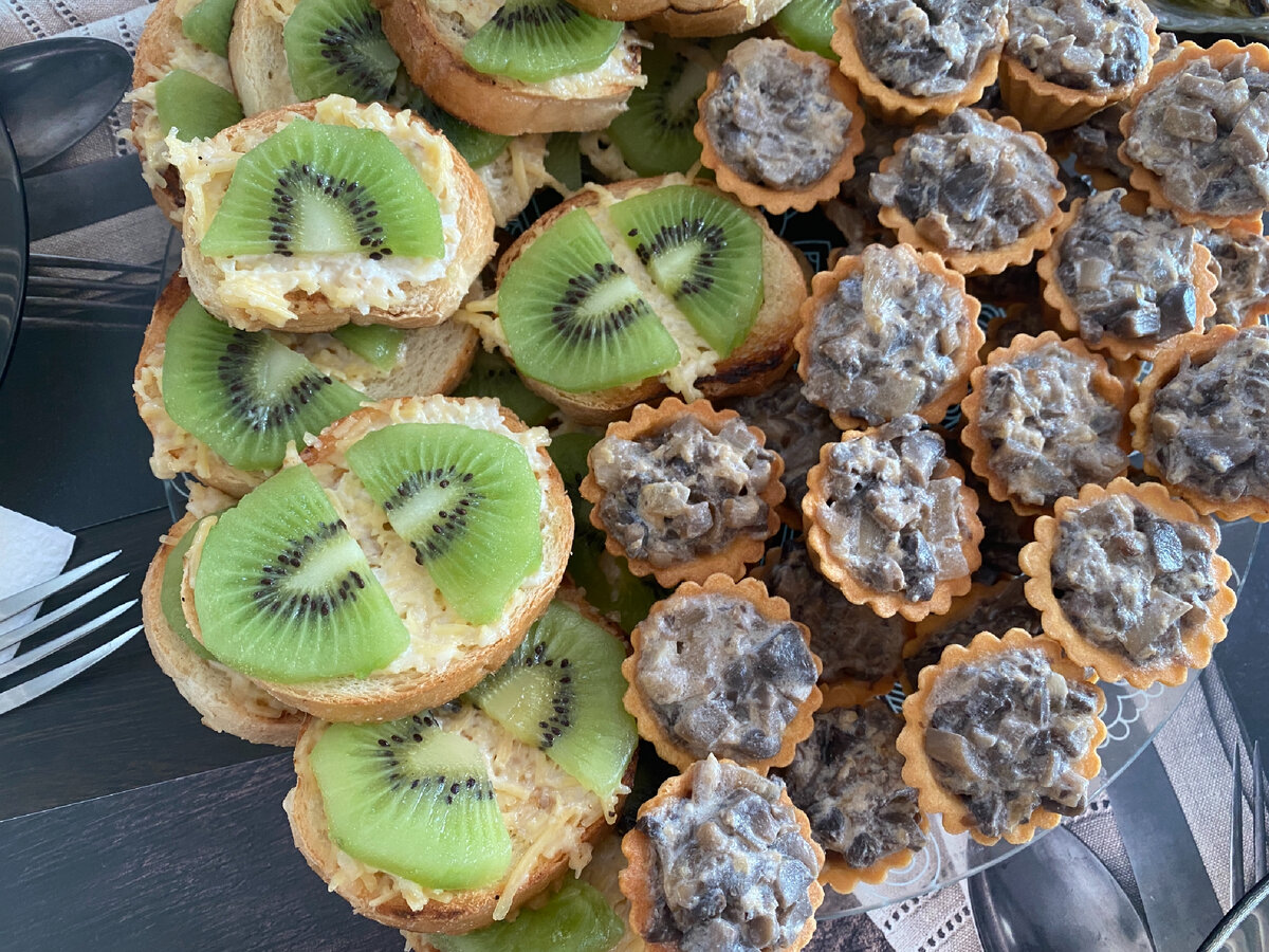Хотя, подойдёт и на праздничный стол, и на посиделки с друзьями. Отличается такой бутерброд не только быстротой приготовления, минимумом требующихся для него ингредиентов, но и удачным сочетанием вкусов (Особенно, оценят любители сочетания сладкого и острого) Ну и вид, конечно, заслуживает дополнительного балла👌 На кусочек багета/ батона ( можно подсушить предварительно, сделав основание хрустящим) положить смесь из натертого на мелкой/крупной тёрке сыра, чеснока и майонеза ( + специи по вкусу) и сверху выкладываем ломтик(и) киви. Вкусно, быстро и красиво готово😍