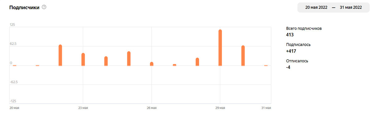 Прирост подписчиков за период с 20 по 30 мая составил 415 человек